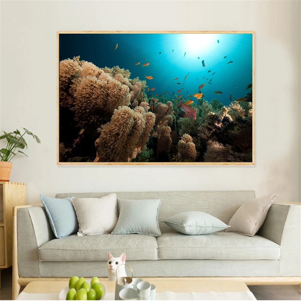 Картина на холсте с изображением рыбы, подводный мир, животные, кораллы, рыба, океан, настенные картины для гостиной, скандинавский постер, декор для детской комнаты