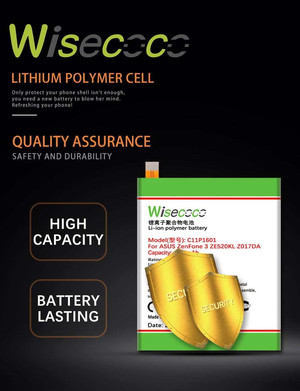 Аккумулятор Wisecoco C11P1601, 4700 мА ч, для телефона ASUS ZENFONE 3 ZE520KL Z017DA Live ZB501KL A007