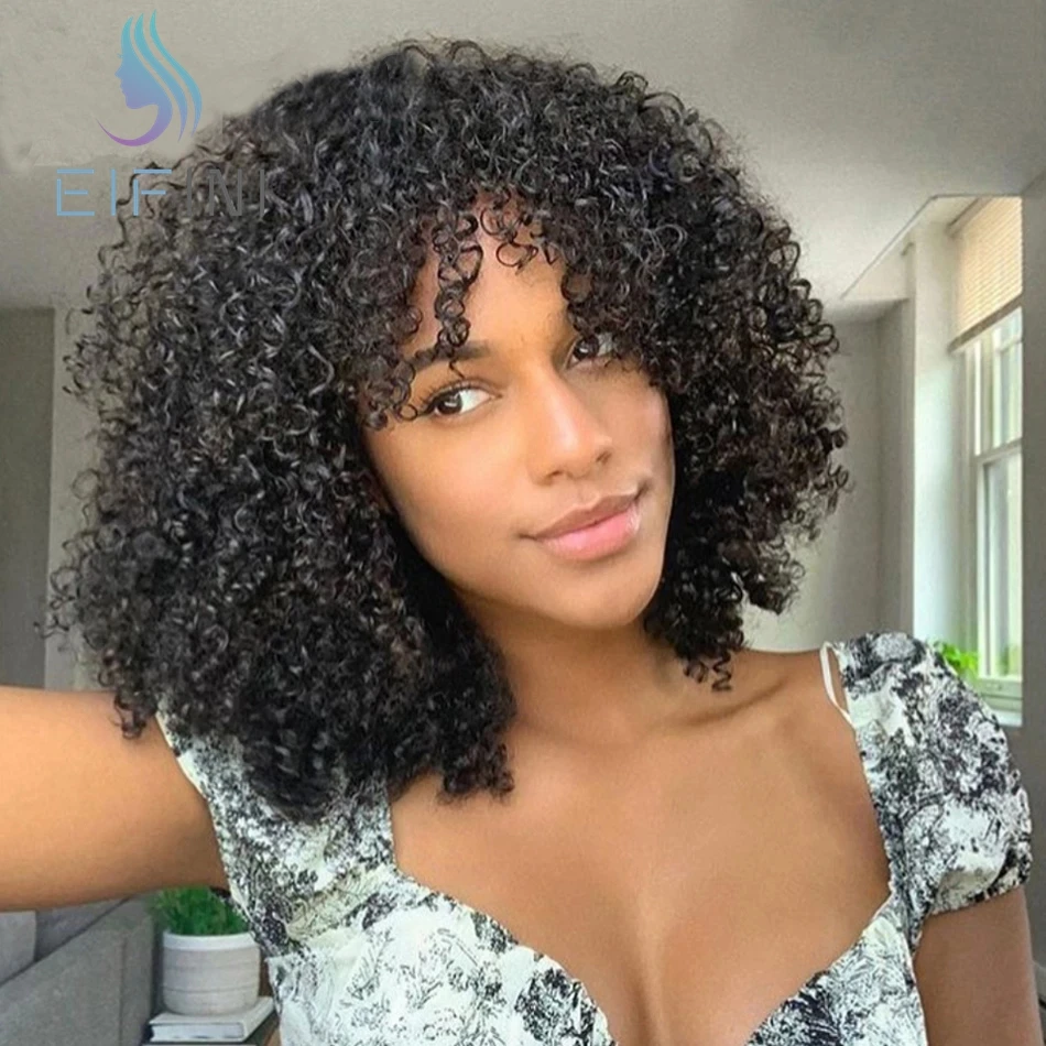 Афро кудрявые вьющиеся парики, бразильские волосы, парик с челкой, плотность 250, малазийские человеческие волосы, парик для женщин, Eifini
