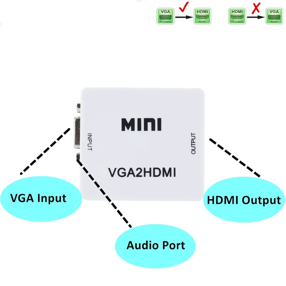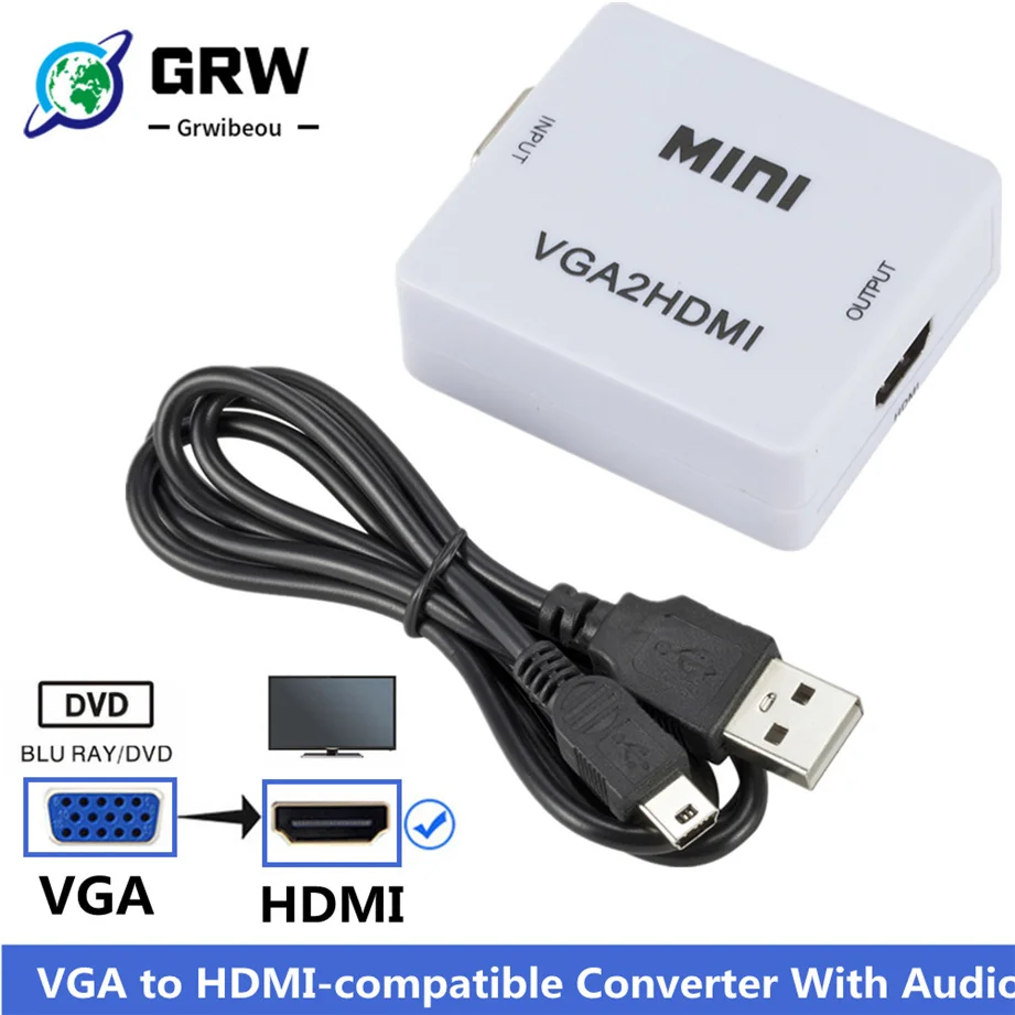 Портативный мини-конвертер Grwibeou с VGA на HDMI, видеоприставка VGA2HDMI, аудиоадаптер 1080P для ноутбуков, ПК, HD ТВ-проекторов, телевизоров