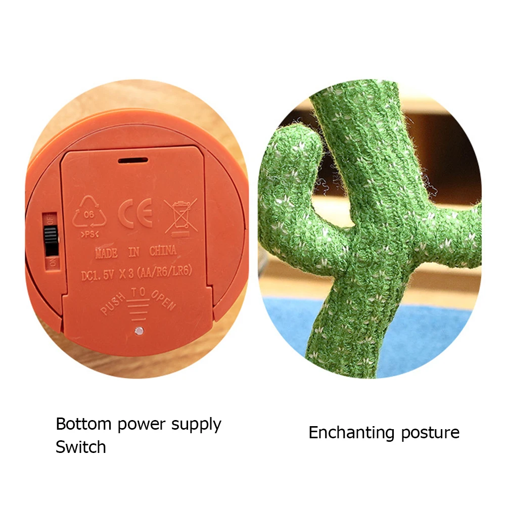 Тип: A: танцующий кактус с 3 песнями, B: питание от аккумулятора: говорящий светящийся кактус с 120 песнями, C: Зарядка: говорящий светящийся кактус с 120 песнями