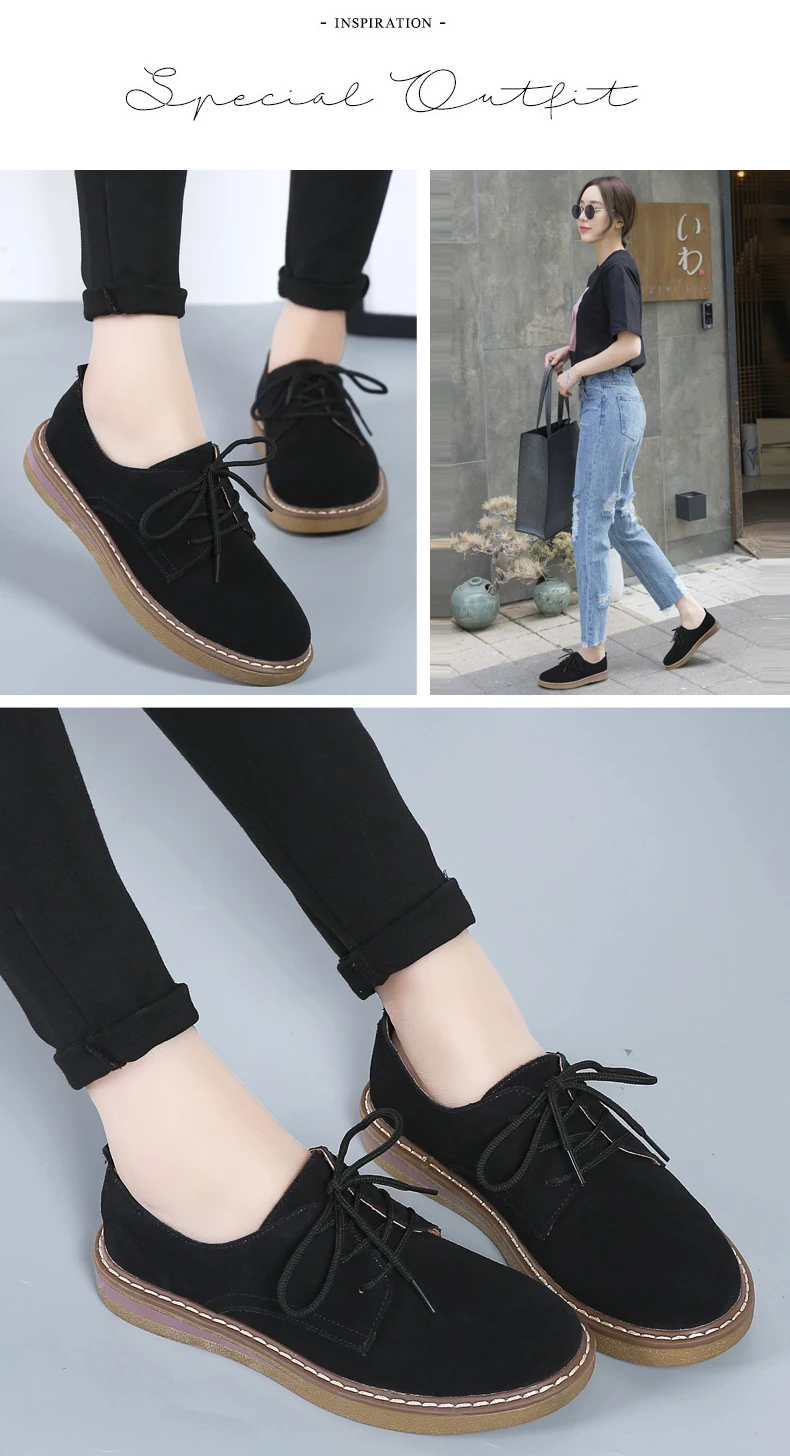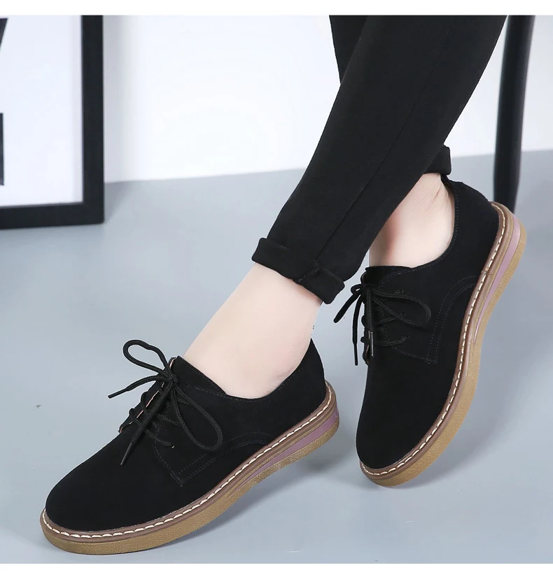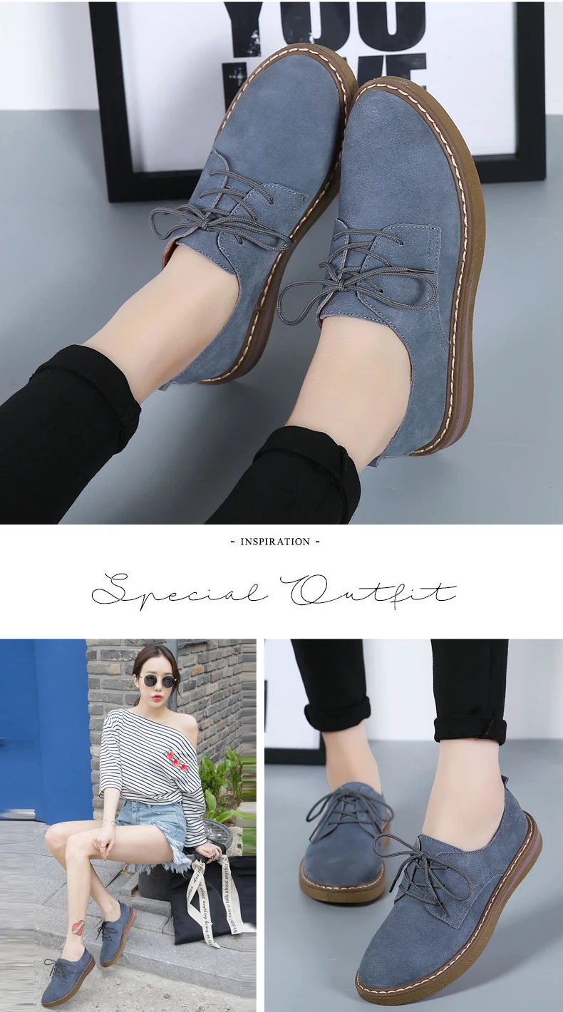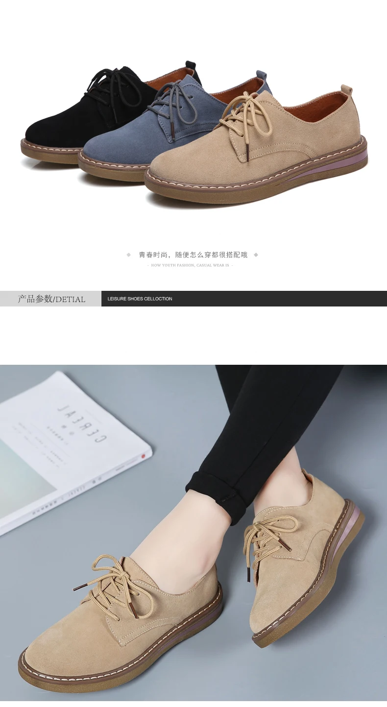 Туфли-лодочки женские на плоской подошве, Кожаные Замшевые кроссовки, на шнуровке, Мокасины, оксфорды, модная обувь на весну