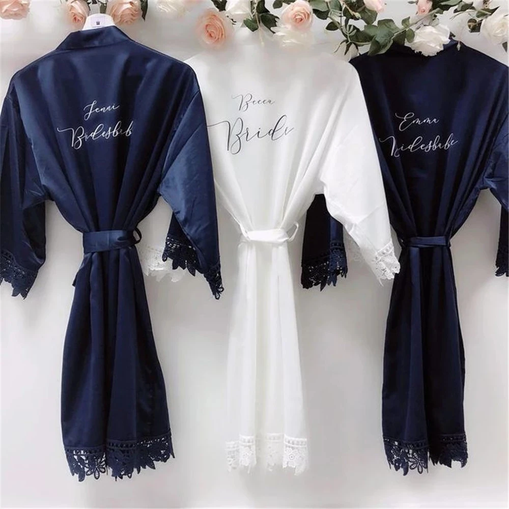 Халат Свадебный женский атласный, кружевной атласный Шелковый банный халат с индивидуальным принтом, для подружек невесты, Вечерний Подарок