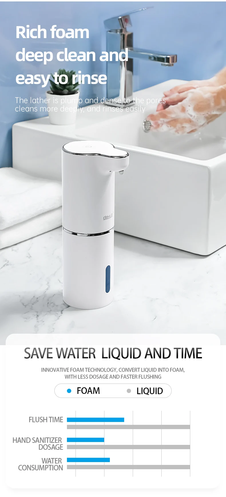 Автоматические дозаторы пенного мыла, умная стиральная машина для ванной комнаты с USB зарядкой, белый, высококачественный ABS материал