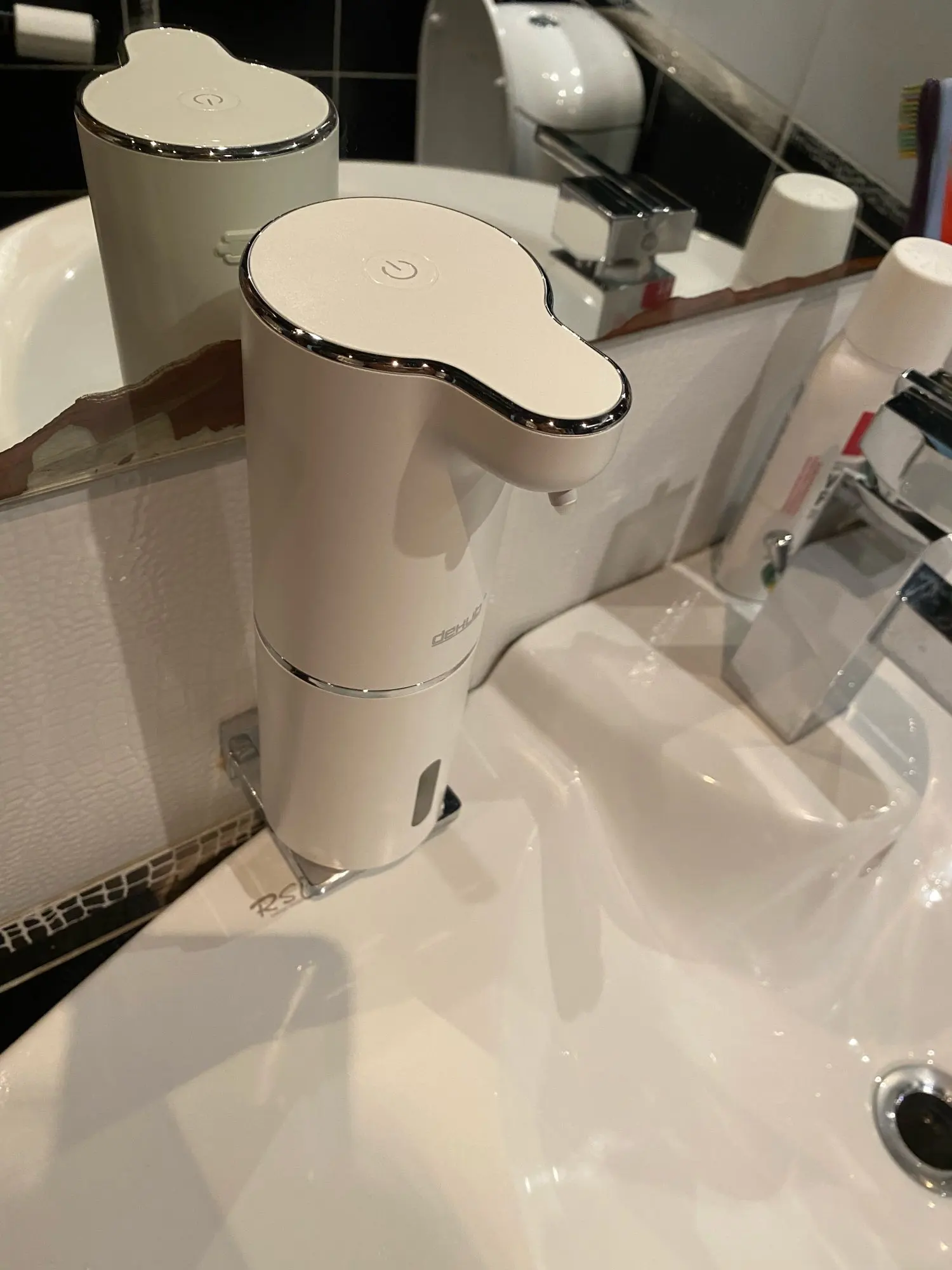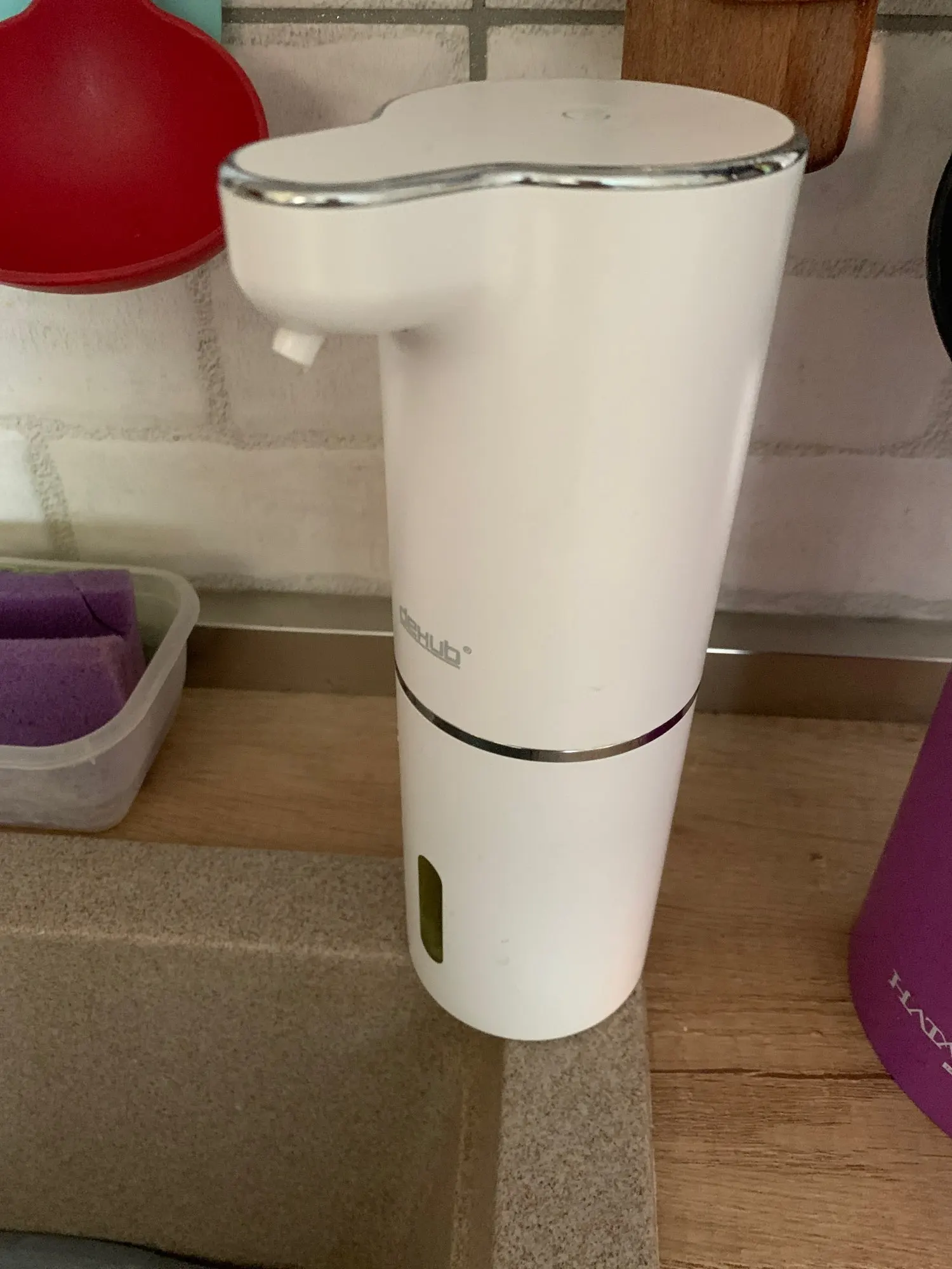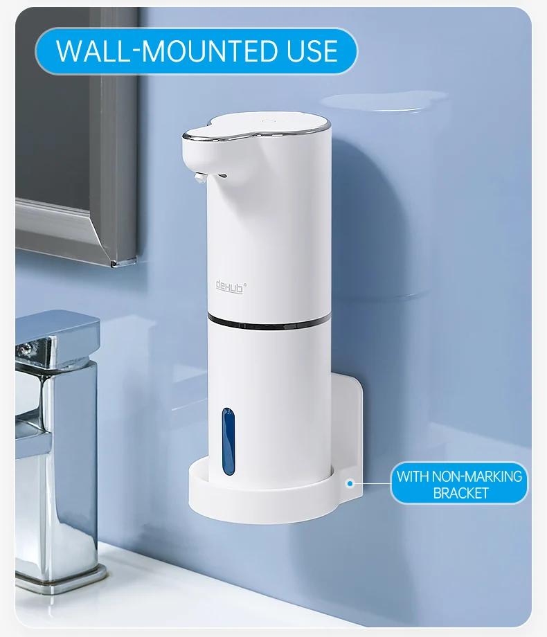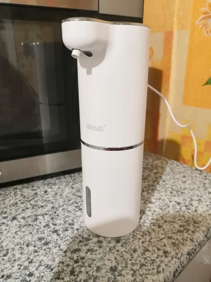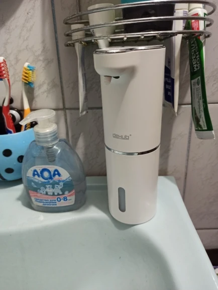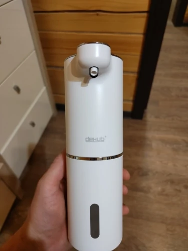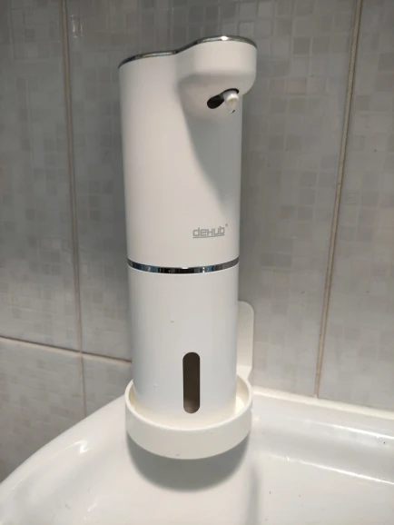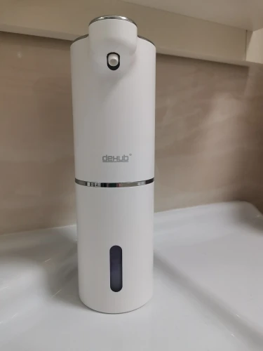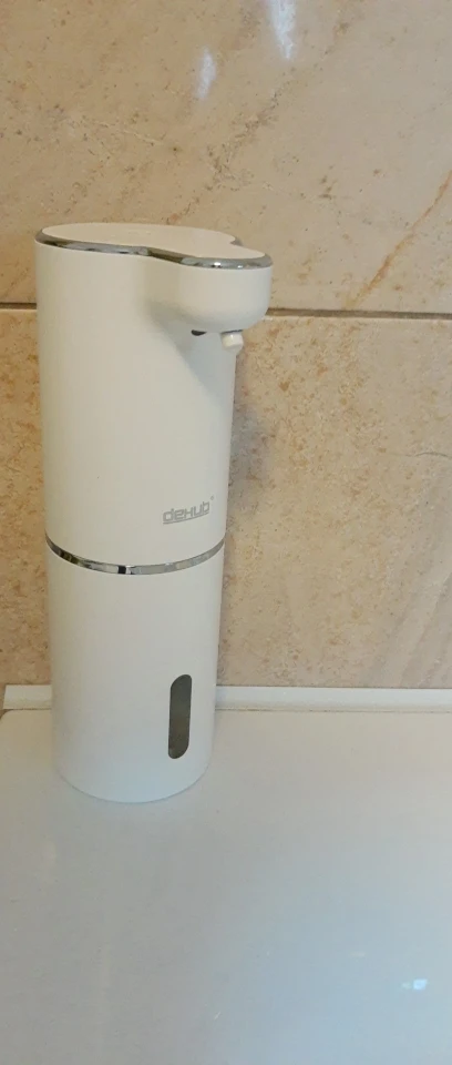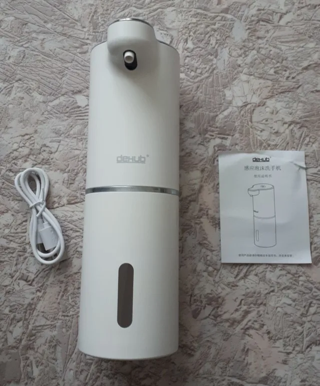 Приятно, что купили оригинал, с надписью DeHUB, товарный знак. Покупатели в отзывах пишут, что у подделок цвет пластмассы и подставки (держателя) разнооттеночные. У нашего оригинала такой проблемы с оттенками цвета нет, всё прекрасно. Разные дозы от разных цветов нажатия кнопки включения уже проверили, всё прекрасно настраивается. Использовали японскую пенку фирмы Biore, ничего не разбавляя, её можно заказать через Вайлдбериз или в Глобусе купить, к примеру. Большое спасибо производителю за качественный товар! Купили два таких, ещё не повесили, предназначалось для двух санузлов в другой квартире, в которой ещё не окончен ремонт. Особенно приятно, что в комплекте не только шнур зарядки аккумулятора, но и двусторонний скотч в форме квадрата, будет удобно и быстро прикрепить самой, не приглашая монтажника с дрелью.