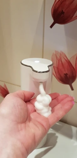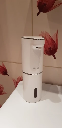 Дозатор очень понравился.Сколько проработает не известно,но будем верить в лучшее)У дозатора с лёгкостью откручивается балон,куда заливается мыло.Я разбавила мыло водой.К 1 части мыла жидкого,добавила 2 части воды,перебултыхала и залила.Сверху на дозаторе сенсорная кнопка.Её нужно немного подержать и вуаля,подносим руку к дозатору и получаем нежнейшую,но густую пену)))В комплекте идёт шнур для зарядки аккумулятора.Блока нету.