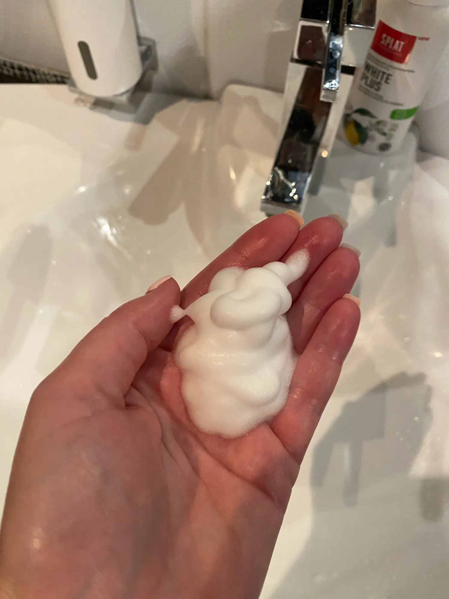 Это повторный заказ. Купила в ванную и на кухню под фэри, просто отличная пена! Регулировка объема пены. Заряжается от юсб.