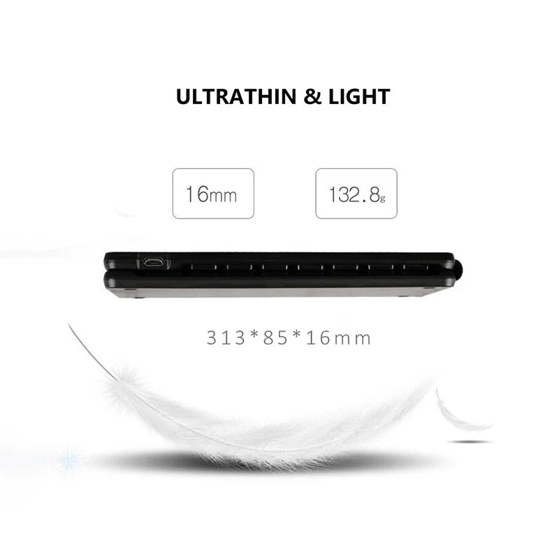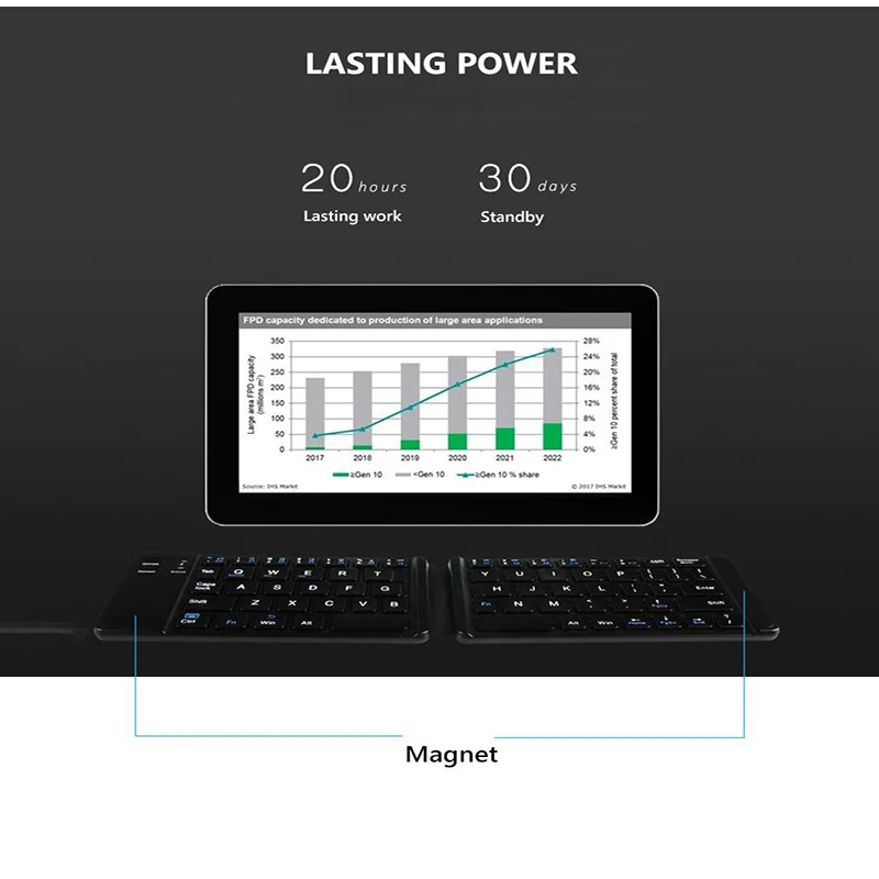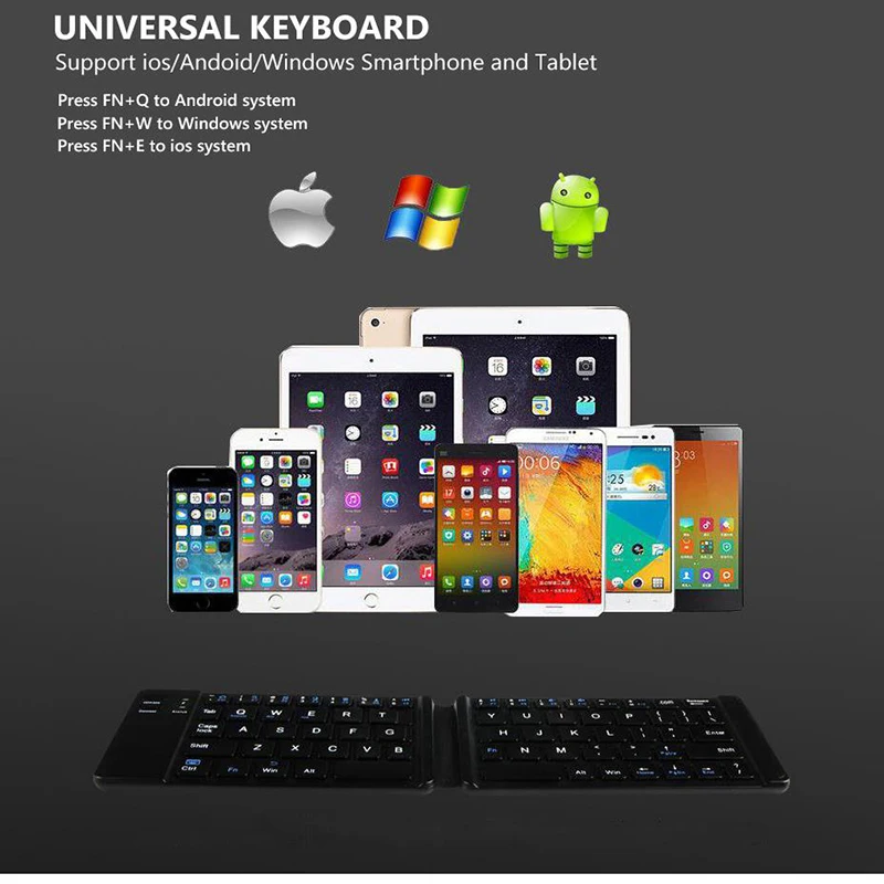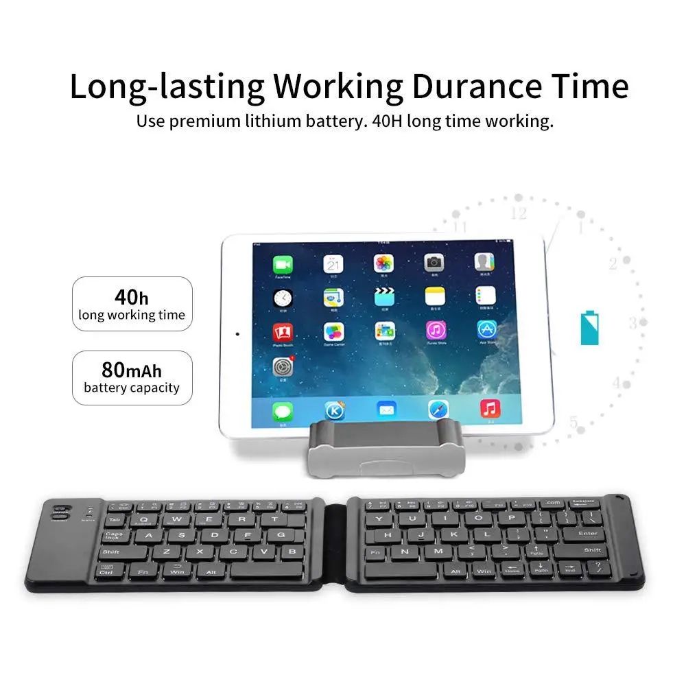 Особенности: [Дизайн Ножничного переключателя]-конструкция Ножничного переключателя делает его удобным в типе и Нет шума, обеспечивая бесшумное использование. [Длительное время работы]-клавиатура оснащена встроенной литиевой батареей емкостью 120 мАч, которая может поддерживать 20 часов работы и 30 дней работы в режиме ожидания [Складной и компактный]-вы можете носить с собой легкую и мини-клавиатуру в любом месте. Он очень подходит для путешествий. [Классический цвет]-классический белый цвет и черный цвет на ваш выбор. Он идеально подойдет для вашего стиля цифрового устройства. [Универсальный]-клавиатура совместима с большинством планшетов, компьютеров и телефонов. И вы можете использовать метод ввода Wubi с помощью клавиатуры, ios, Android и Windows Характеристики: -- Материал: АБС-пластик -- Номер ключа: 67 шт. -- Напряжение: 3-4,2 v -Способ подключения: подключение по Bluetooth -Тип интерфейса: USB 3,0 -Емкость аккумулятора: 120 мАч литиевая батарея -Протокол Bluetooth: 3,0 -Эффективное расстояние: >10 метров -- Время работы кнопки: 3 миллиона кликов -Поддержка системы: Поддержка ios, Android, Windows -Время работы: 140 часов -- Время работы в режиме ожидания: 6 месяцев -Расширенный Размер: 313*85*7,5 мм