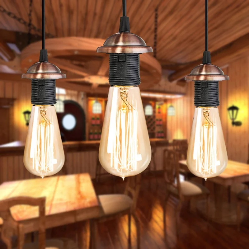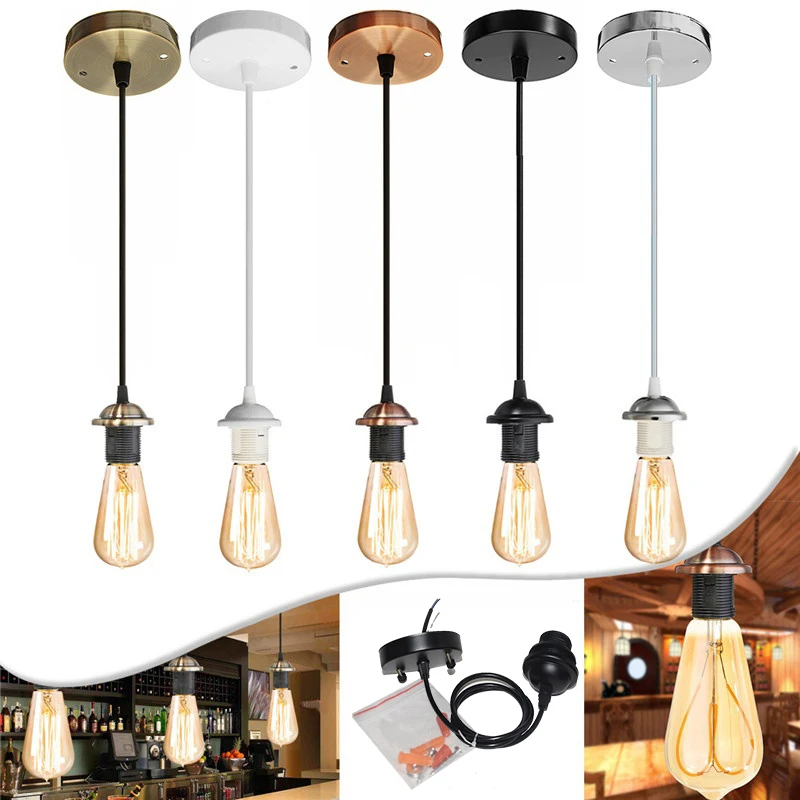 Винтажный промышленный Потолочный подвесной светильник с цоколем E27, винтовой держатель лампы с проводом для замены патрона лампы