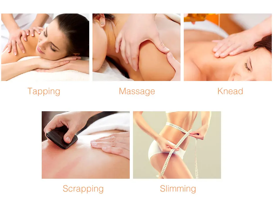 1. Формирование линии тела: Выберите режим электрода EMS, используйте в целевой области в течение 15-30 минут, вы также можете комбинировать инфракрасный и ультразвуковой режим для массажа всего вашего тела, который приятно подтянет кожу вашего тела;