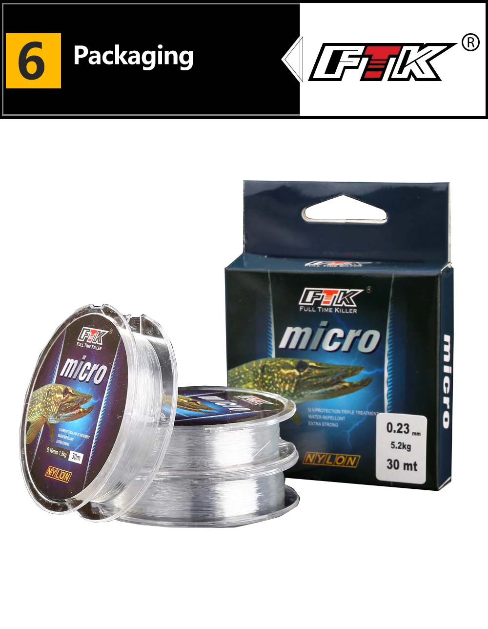 ФТК подледной рыбалки нейлоновый шнур с возможностью погружения на глубину до 30 м 2,9-12.5LB 1,3-5,7 кг 0,08-0,25 DIAмм леска прозрачная ПВХ-пленка для ловли карпа провода зимней нейлон