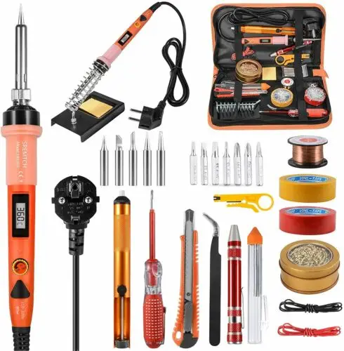 1: Паяльник мощностью 80 Вт быстро нагревается благодаря технологии внутреннего нагрева керамики, высокой термостойкости, может защитить ваши сварочные предметы.2: паяльник с ЖК-дисплеем высокой четкости, который более четко показывает статус температуры.3: комплект паяльника поставляется с кнопкой включения и кнопкой регулировки температуры, поэтому его можно легко и свободно включать/выключать или регулировать температуру, которая вам нужна.4: Изготовлен из японской технологии точной печати и комплект для пайки можно спечать при высокой температуре и долго использовать.5: Если вы хотите узнать, как припаять, этот стартовый набор паяльника идеально подходит для ваших нужд. Это очень удобно и компактно.6: нескользящая Мягкая резиновая ручка для максимального комфорта и безопасной пайки.