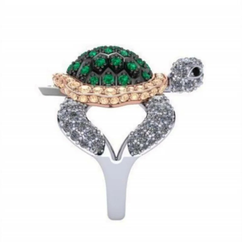 Креативная серия Ocean, модное двухцветное Гальваническое кольцо с кристаллом и зеленой черепахой для женщин, свадебные украшения, аксессуары