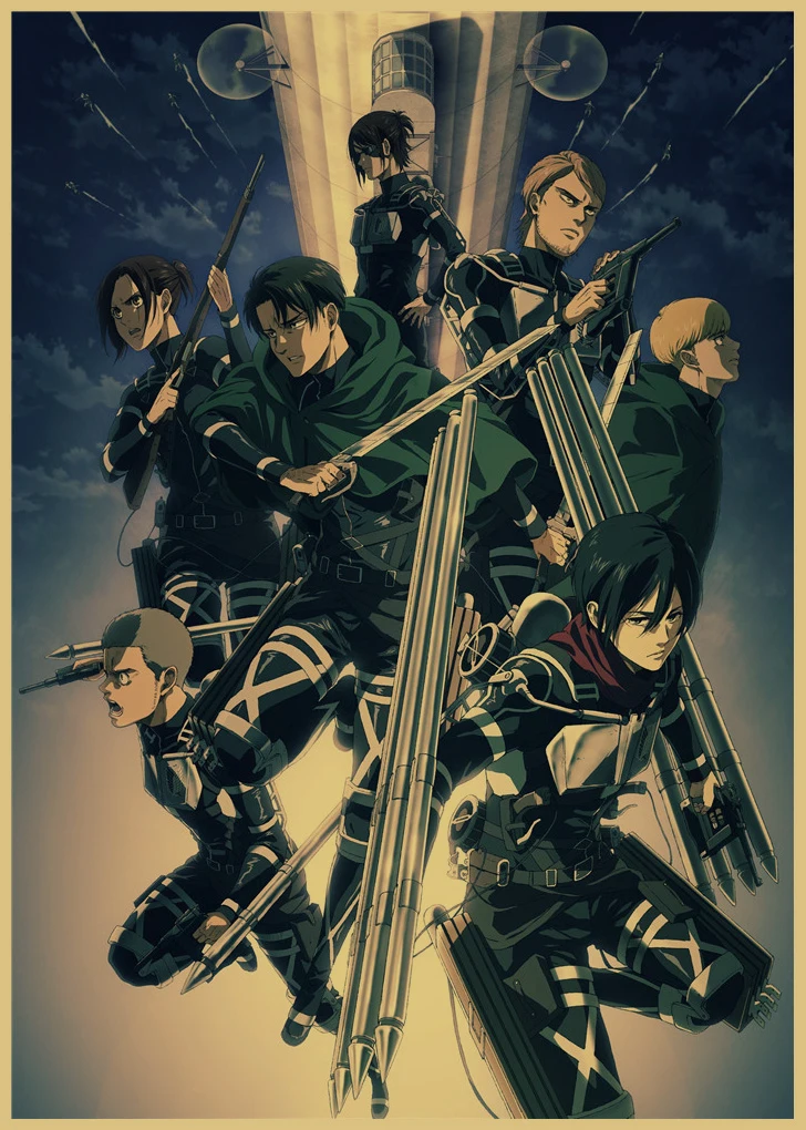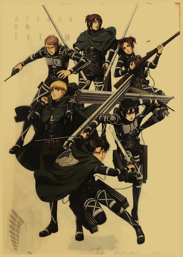 Ретро-постеры атака на Титанов японские аниме горячие года, крафт-бумага для домашнего декора, настенные постеры, купи 3, получи 4