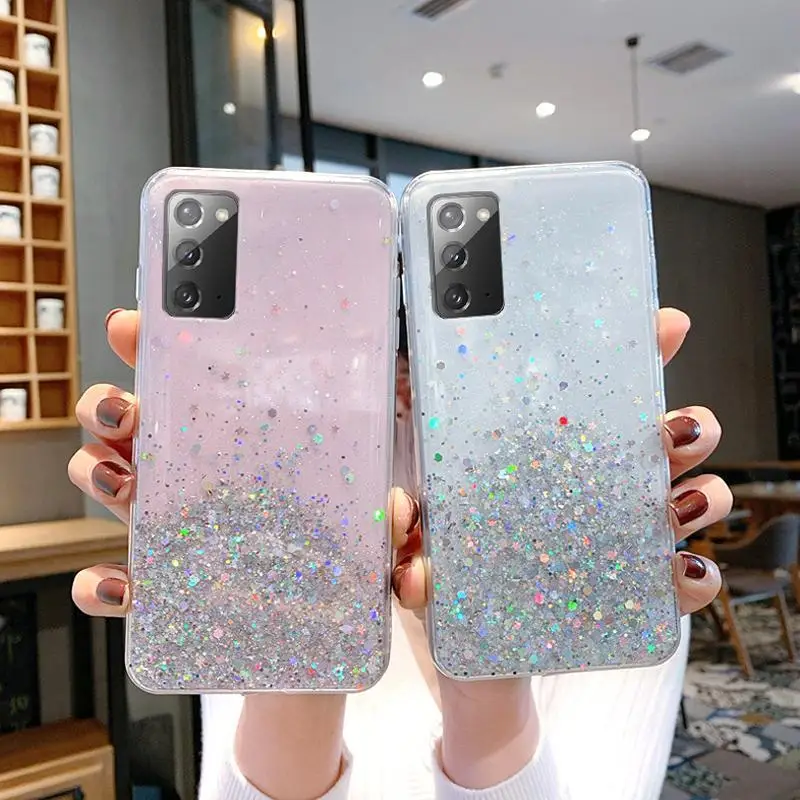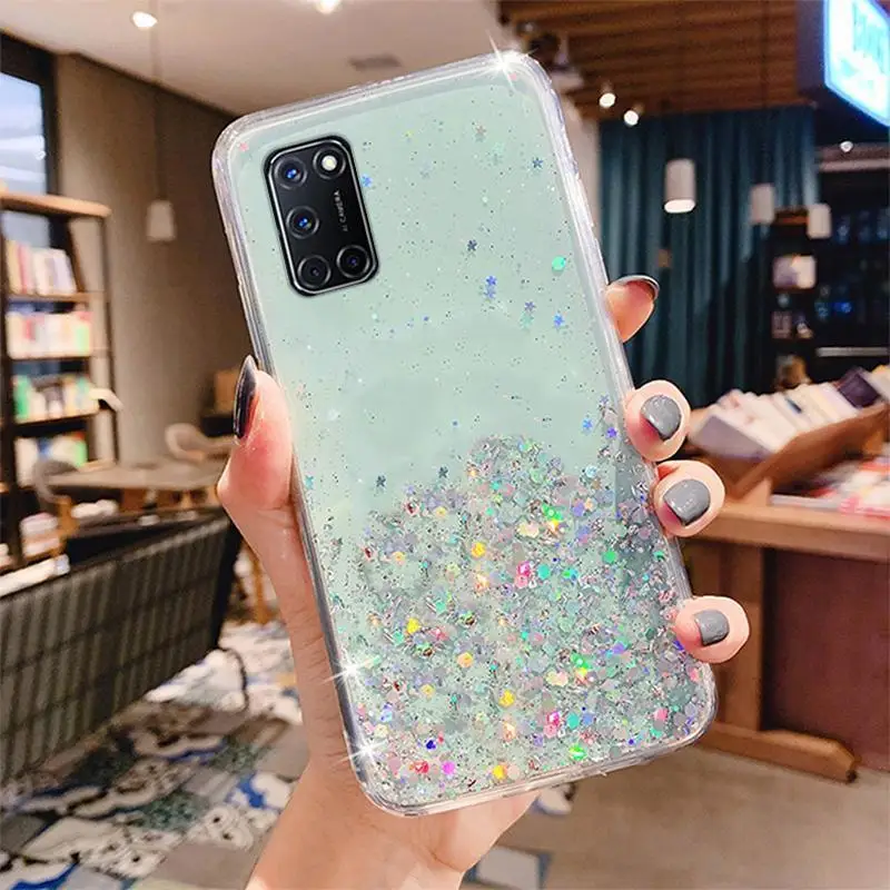Чехол для телефона Samsung Galaxy A12, A32, A42, A52, A72, прозрачный чехол для Samsung A02, A02S, M30S, M21, M31, M51, мягкий чехол из ТПУ с блестками и звездами