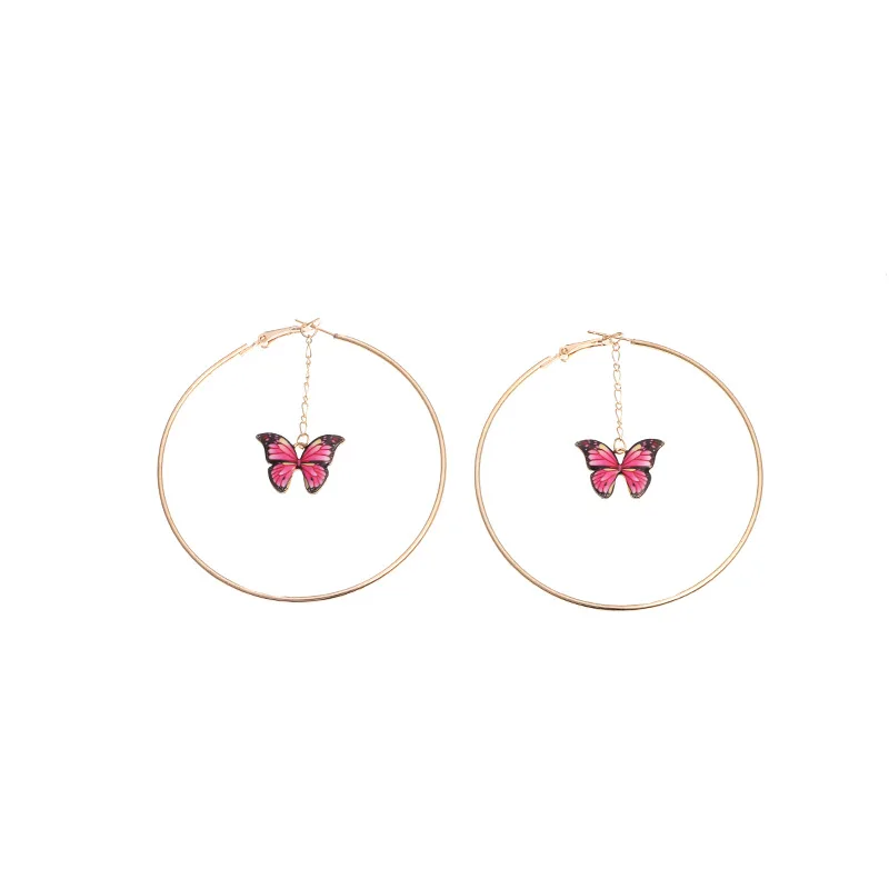 Серьги-кольца женские с двойной бабочкой, многоцветные большие круг...