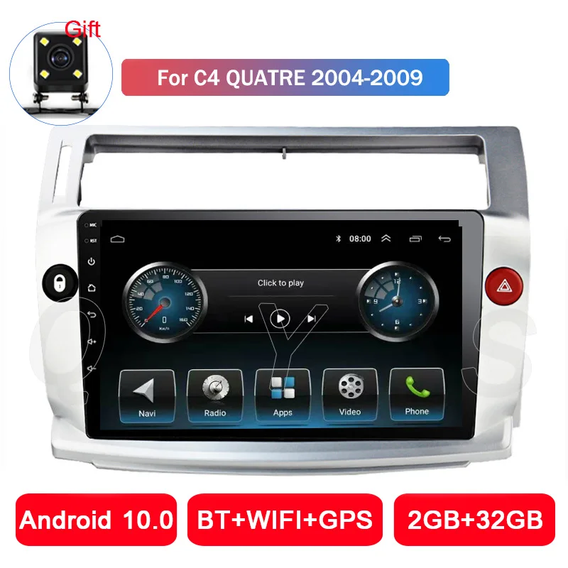 Автомобильный мультимедийный плеер, Android 2004, GPS-навигация для Citroen C4 четыре, 2005, 2006, 2007, 2008, 2009, 2 ГБ + 32 ГБ