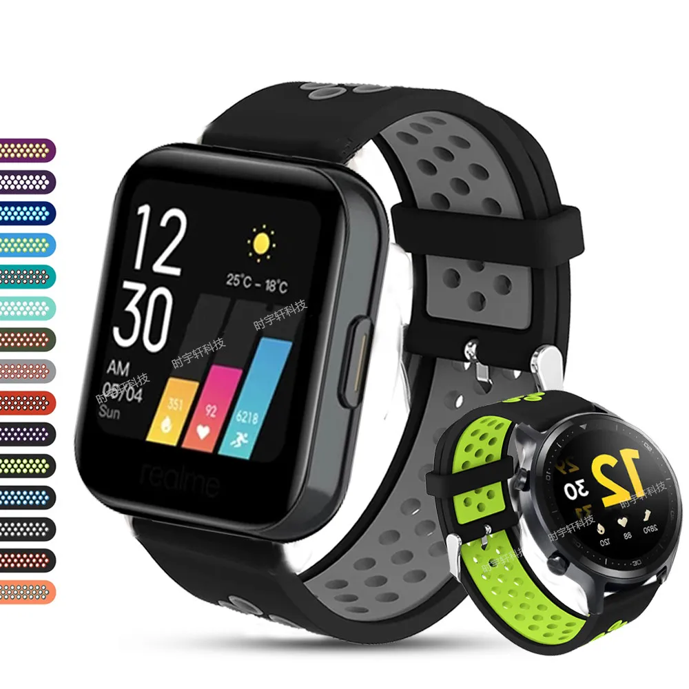 Двухцветный силиконовый ремешок для часов Realme, спортивный сменный ремешок для часов Realme, браслет correa
