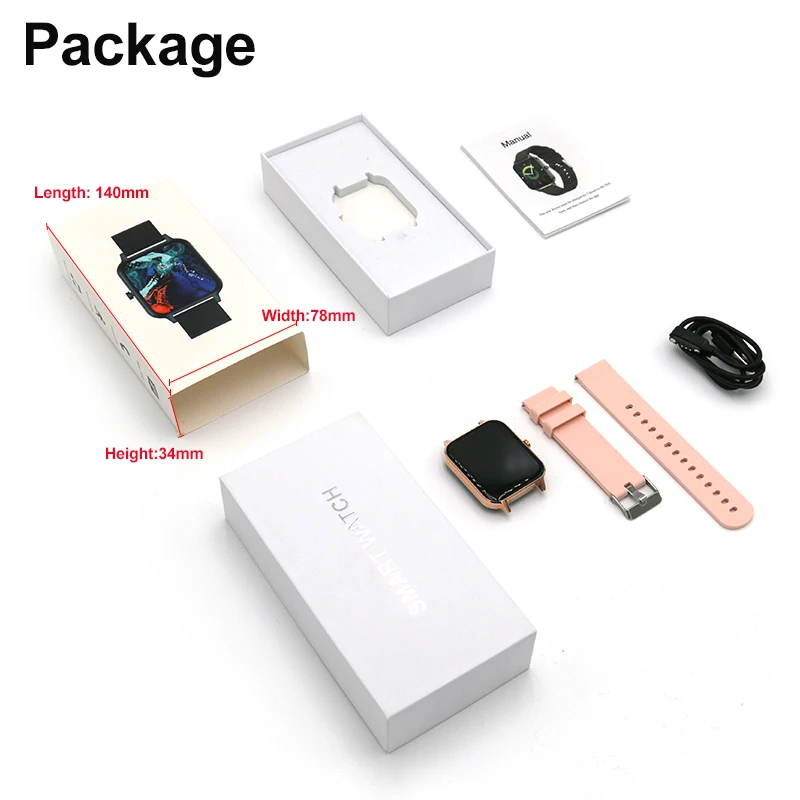 * Название: Смарт-часы с термометром и вызовом и музыкой* Чехол Размер :(; При выборе руководствуйтесь длиной 43,1 мм * (ширина) 37,3 мм * (толщина) 9,8 мм* Ширина ремешка: 20 мм* Экран: 1,69 дюйма 240*280 IPS Full-touch* Аккумулятор: литий-полимерный аккумулятор 230 мАч* Срок службы батареи: 1-3 дня* Время работы в режиме ожидания: 10 дней* CPU:HS6621* PPG датчик сердечного ритма: HRS3300* Чип для телефонных звонков Bluetooth: BT8858* RAM:128MBT* G-сенсор: SC7A20* Подключение: Bluetooth 5,0 + Bluetooth 3,0* Системные требования: Android 5,1 + / IOS 8,0 +* Приложение: wearfitpro