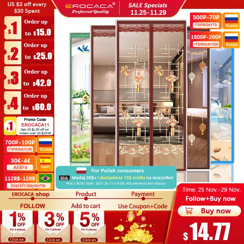 Магнитная сетка для защиты от насекомых, сетка для защиты от комаров, автоматическое закрытие, размер под заказ, простая установка, новинка 2021