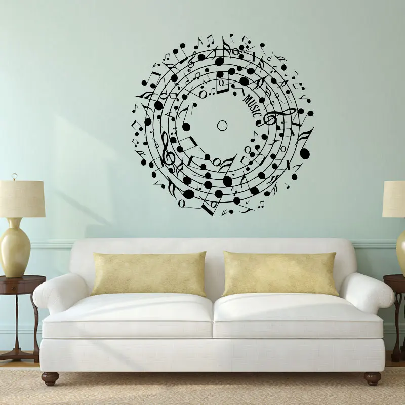 Виниловая наклейка на стену с музыкальными нотами, музыкальный узор, круглая наклейка на стену, музыкальный вентилятор, для дома, гостиной, спальни, модное украшение yy11