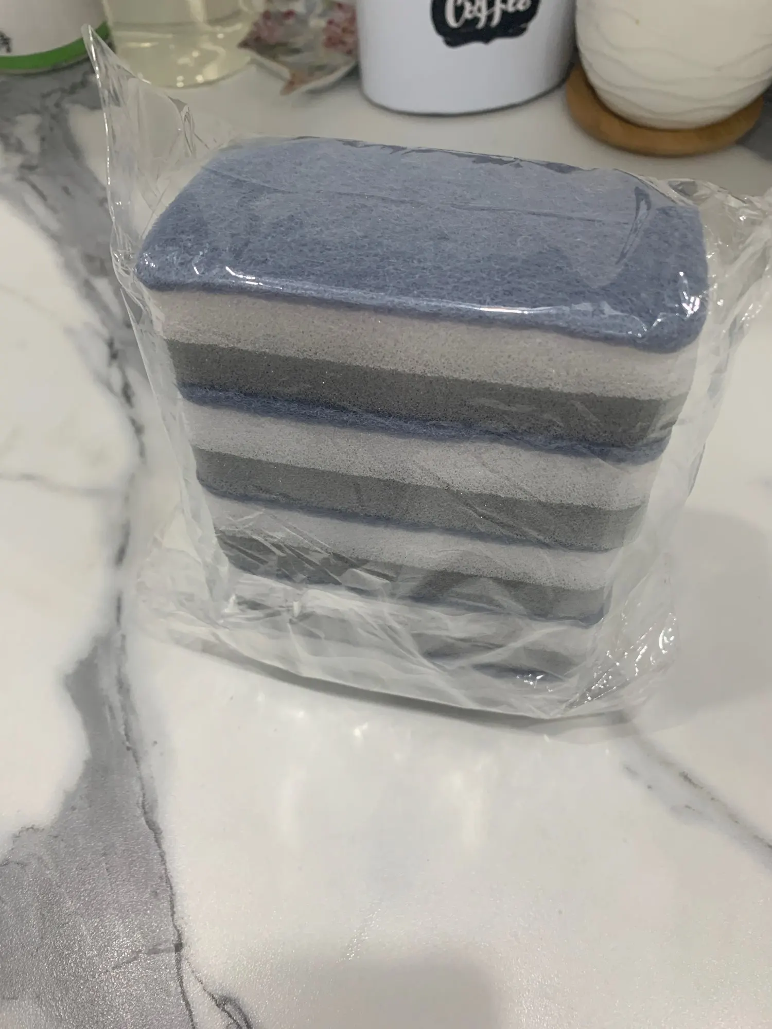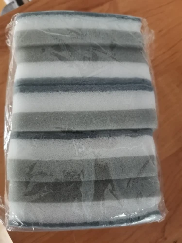 пришли немного помятые, но в хорошем состоянии, без повреждений. Верхняя часть очень мягкая, нижняя как у обычной губки. Ничем не воняли, было ощущение что они уже пропитаны каким-то моющим средством