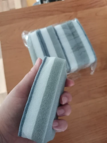 ужасные губки.на два дня хватает. потом отрывается чистящая часть.да и губка слишком мягкая.не понравилось и больше заказывать не буду