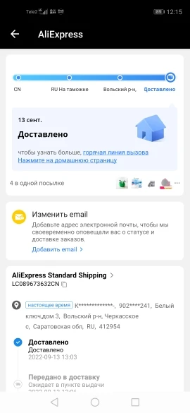 Страна: RU Color: A Доставка: Cainiao Super Economy 21.09.2022