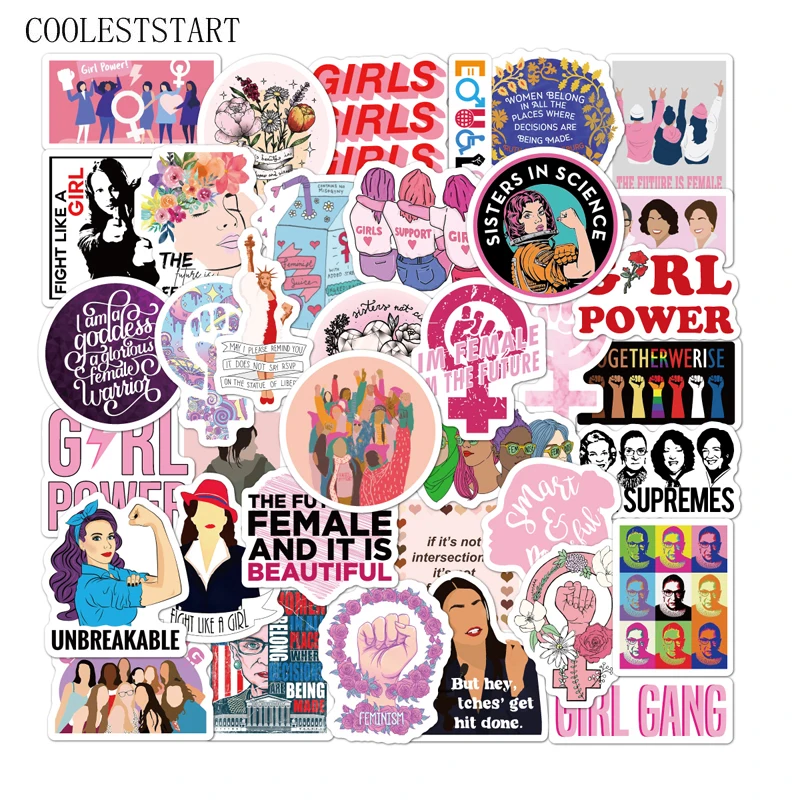 Стикеры для девочек с мотивом феминизма и мультфильма, для детей, с...