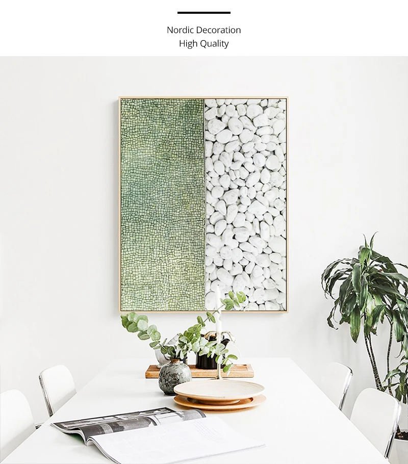 Простая Картина на холсте с зелеными листьями и гальками, освежающий постер, скандинавский настенный художественный принт, картина в скандинавском стиле, домашний декор