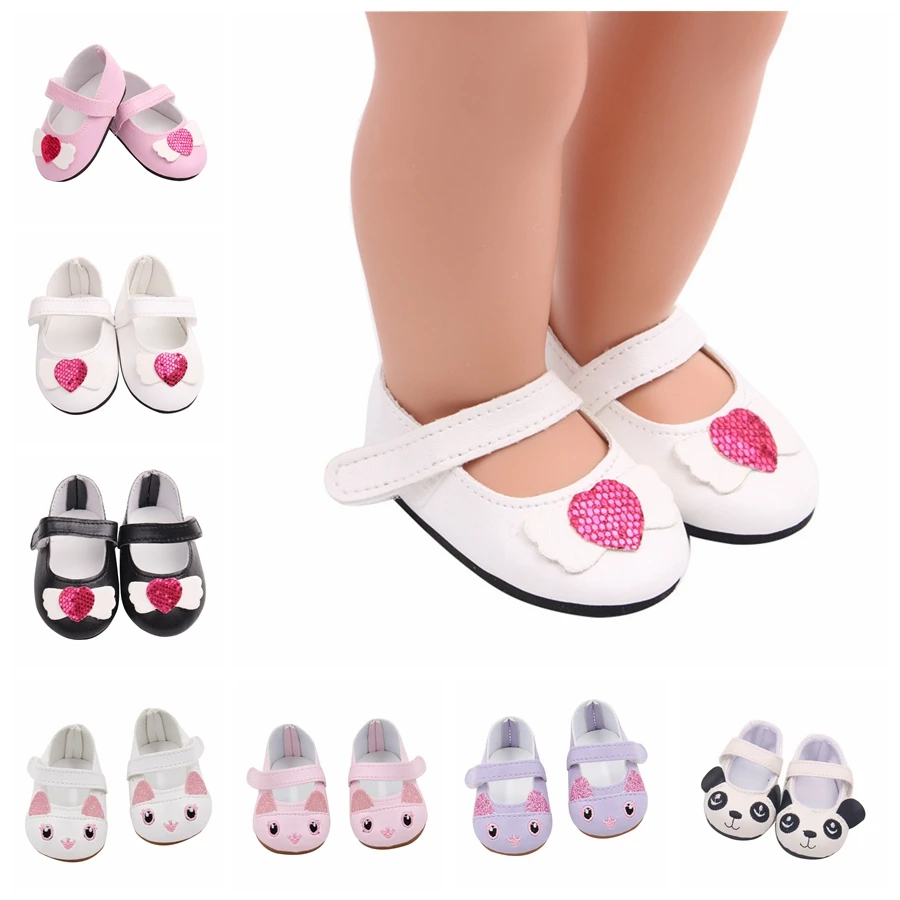 Новое поступление, милый кот/панда/блестящее сердце 7 см, обувь из искусственной кожи для кукол 43 см, мини обувной игрушечный, аксессуары для кукол