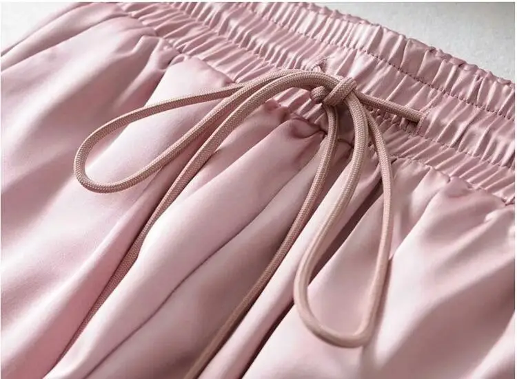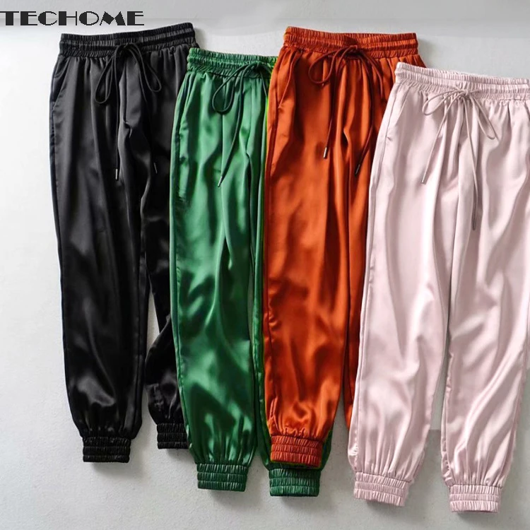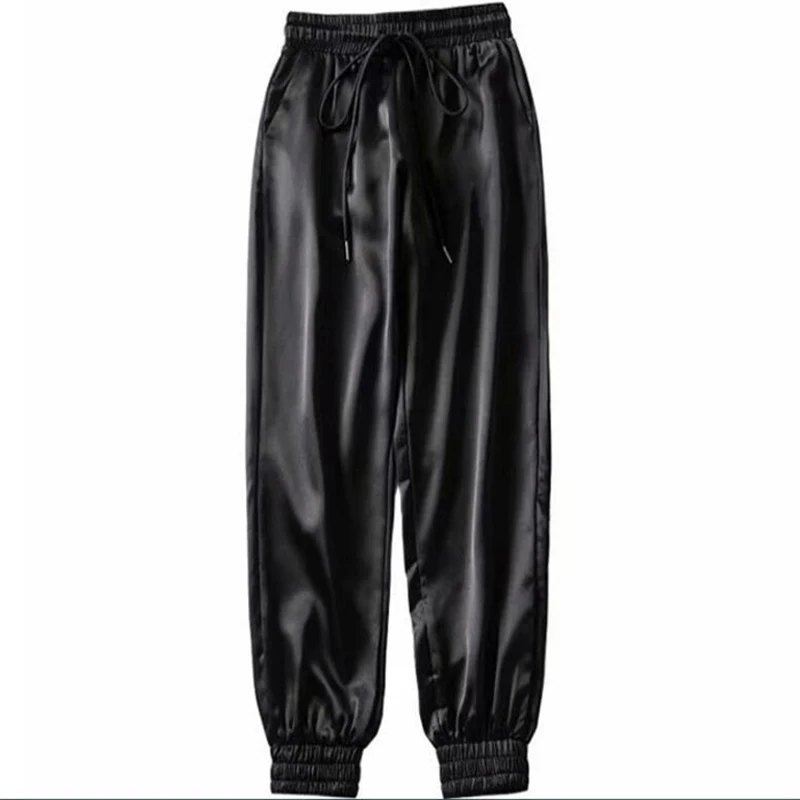 Женские атласные брюки, брюки в европейском стиле с эластичной талией, уличный стиль, лето 2021