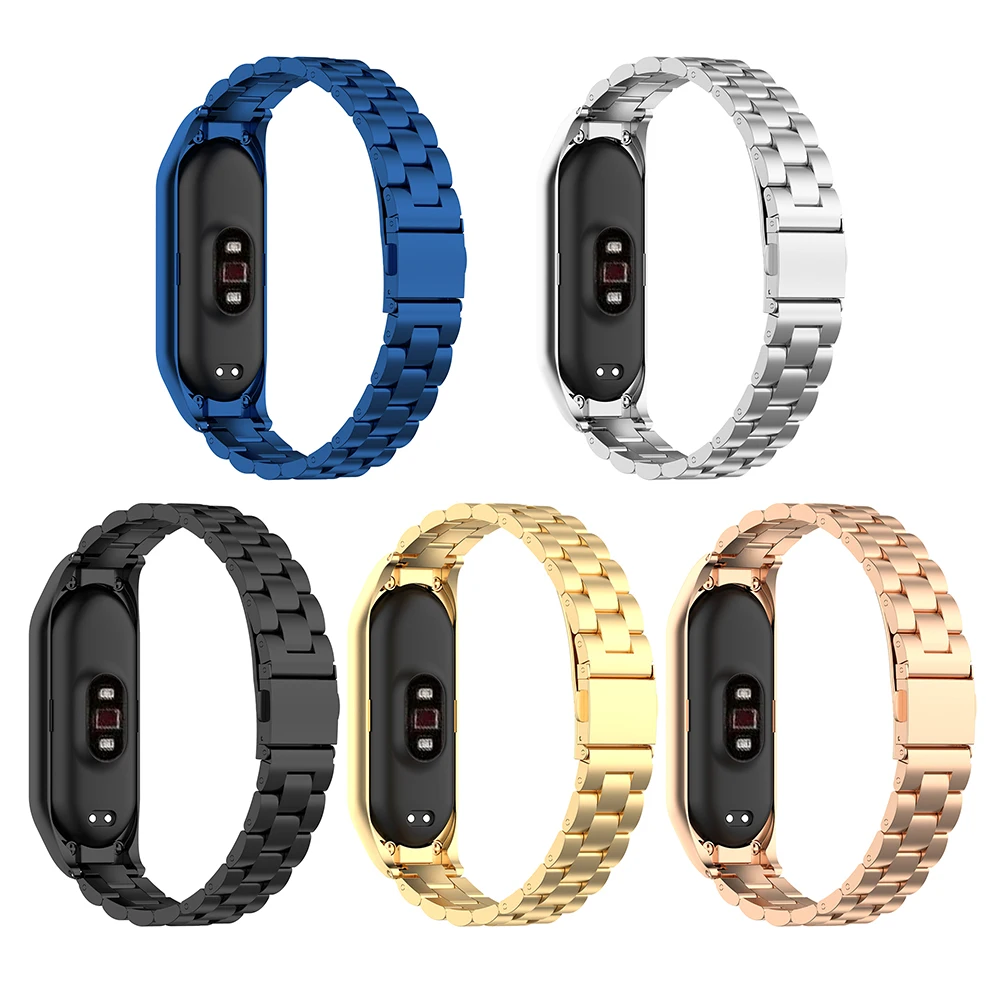 Ремешок металлический для Xiaomi Mi Band 5, сменный Браслет для MiBand 6 NFC, Аксессуары для браслета MI5, MI6, черный, серебристый
