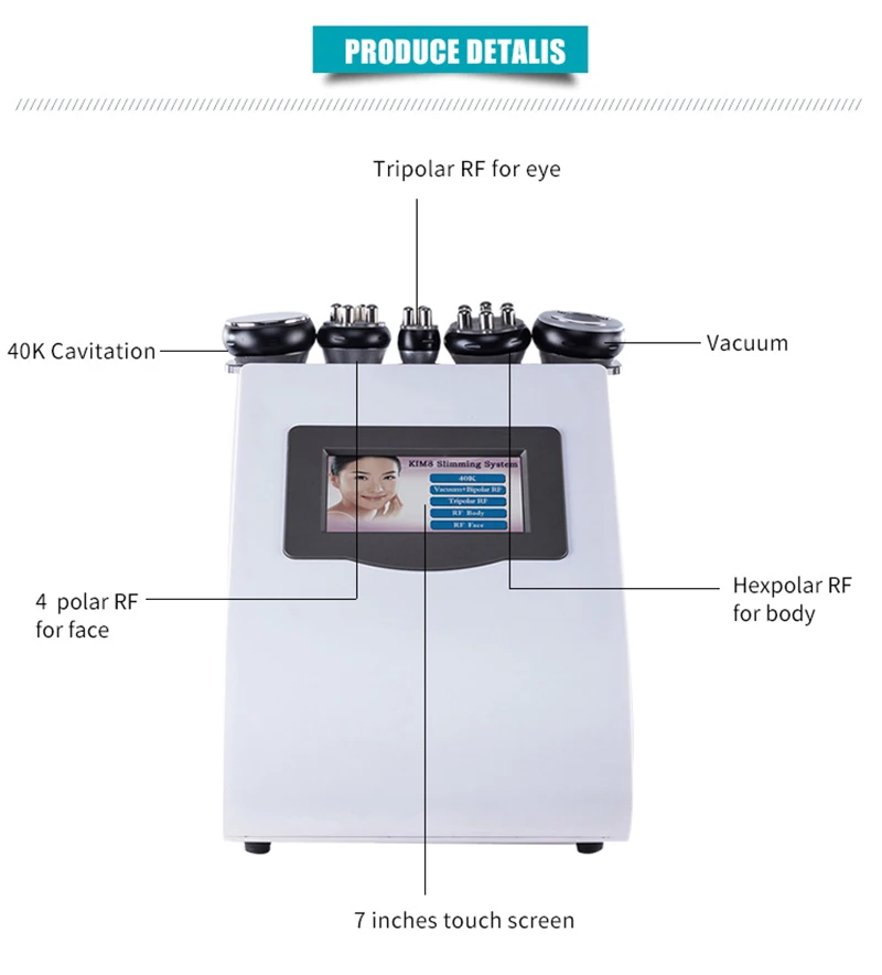 С мощной звуковой волновой головкой, мощная звуковая волна 40000 Гц может излучаться для вибрации жировых клеток на высокой скорости и производства многочисленных вакуумных воздушных карманов внутри и снаружи жировых клеток, робутно воздействуют на жировые клетки для генерации интровертного взрыва и распадают триглицерид в Глицерол и свободные жирные кислоты. Затем RF волны на частоте 1 МГц применяют для истощения интегрированного глицерина и свободных жирных кислот через гепатоэнтеральную циркуляцию. Наконец, для позиционирования и затягивания жира Используются Вакуумные радиочастотные и энергетические электроды. В физике она известна как "кавитация". Микропора интровертированный взрыв внутри и снаружи клетки может привести к усиленному молекулярному движению и более высокому уровню энергии, и это, наконец, вызовет разрыв жировых клеток и тем самым добиться эффекта бодибилдинга и потери веса.