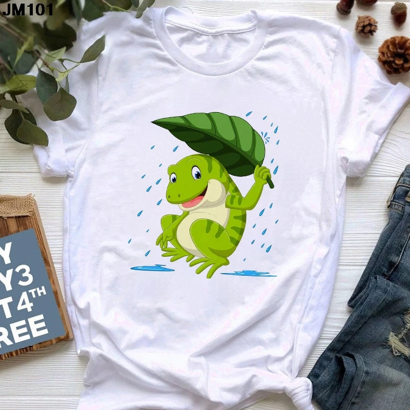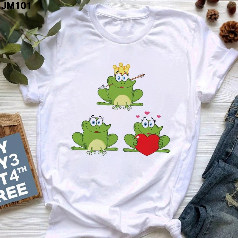 Футболка женская с круглым вырезом, Забавный Милый мультяшный принт лягушки, Повседневная модная белая рубашка в стиле Харадзюку, топ с коротким рукавом