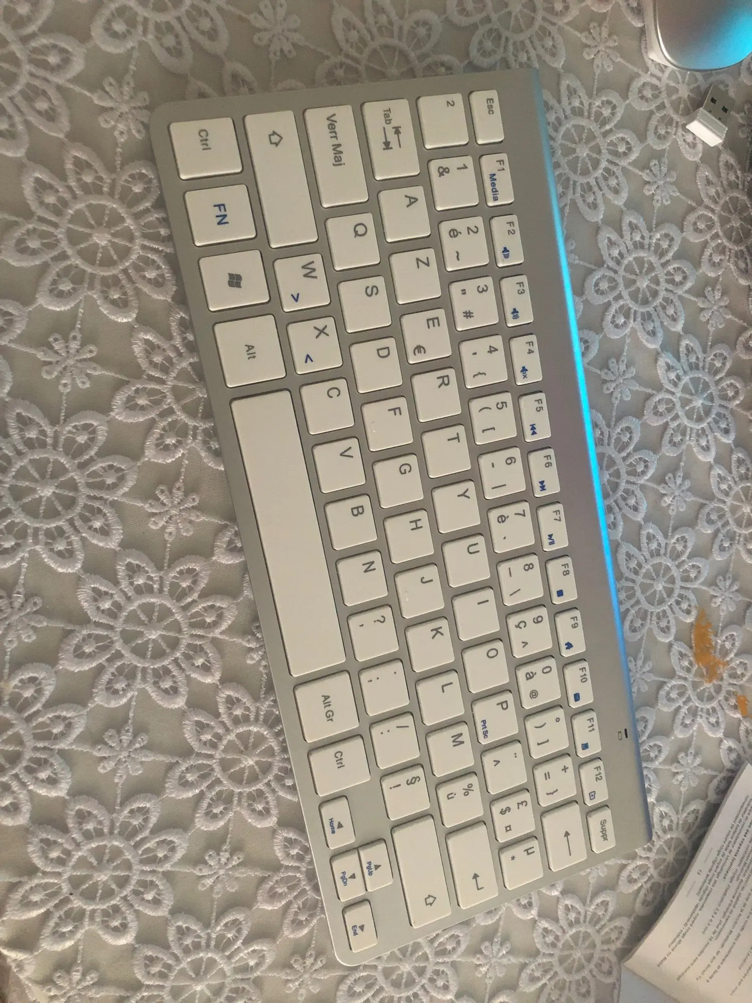 Клавиатура находится во французском макете, если вы обнаружите, что выход клавиатуры не во французском (AZERTY) макете,Пожалуйста, добавьте французский метод ввода в вашу системуТак что выходные символы такие же, как на клавиатуре
