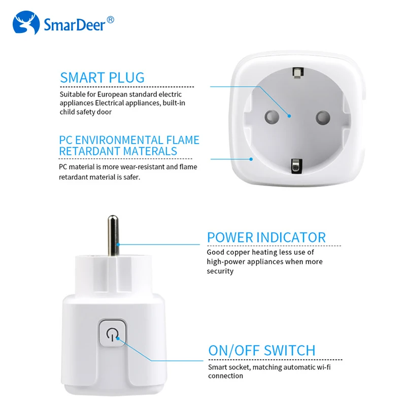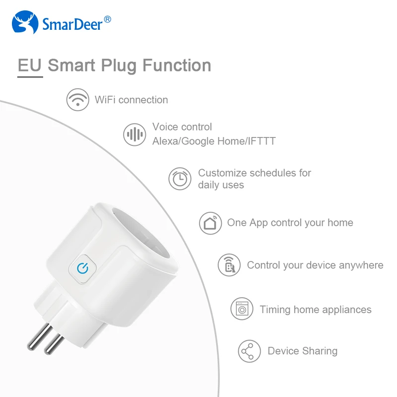 SmarDeer 16A EU WiFi розетка электричество, таймер, умная розетка, Голосовое управление с Aazon Alexa и Google Home