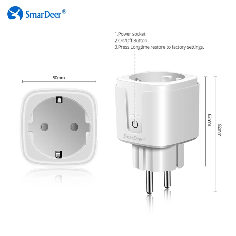 Смарт-розетка SmarDeer с поддержкой Wi-Fi и таймером, 16 А