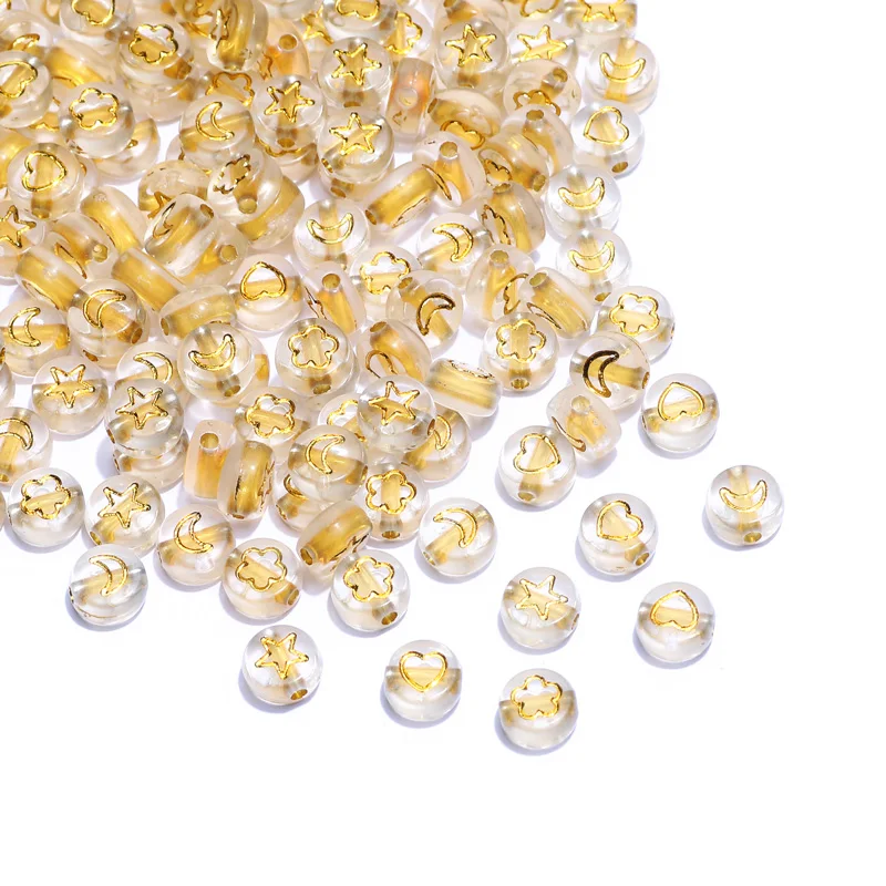 7*4 мм звездное золотого цвета смешанные с изображением Луны и звезд, цветочное сердце круглые акриловые бусины с плоским письмо Spacer Бусины для самостоятельного изготовления ювелирных изделий браслет