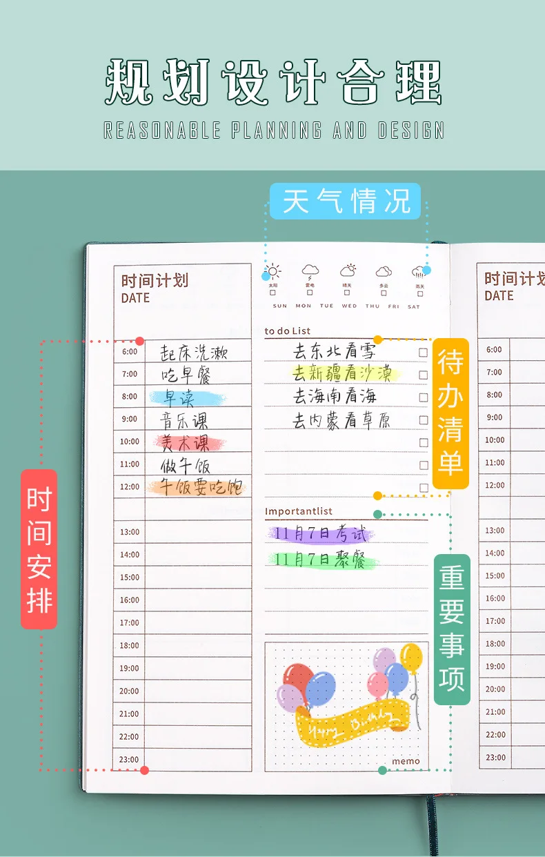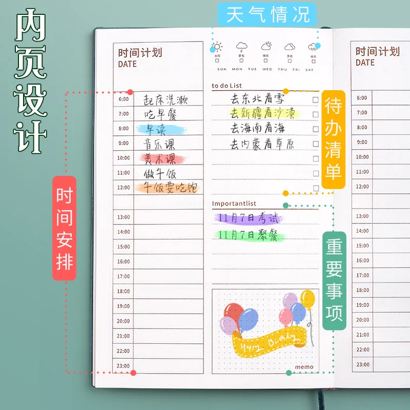Блокнот-планировщик на 365 дней, однотонный, ежедневный, милый, кавайный дневник план, ежедневник на год, ежедневник, школьная и офисная станция