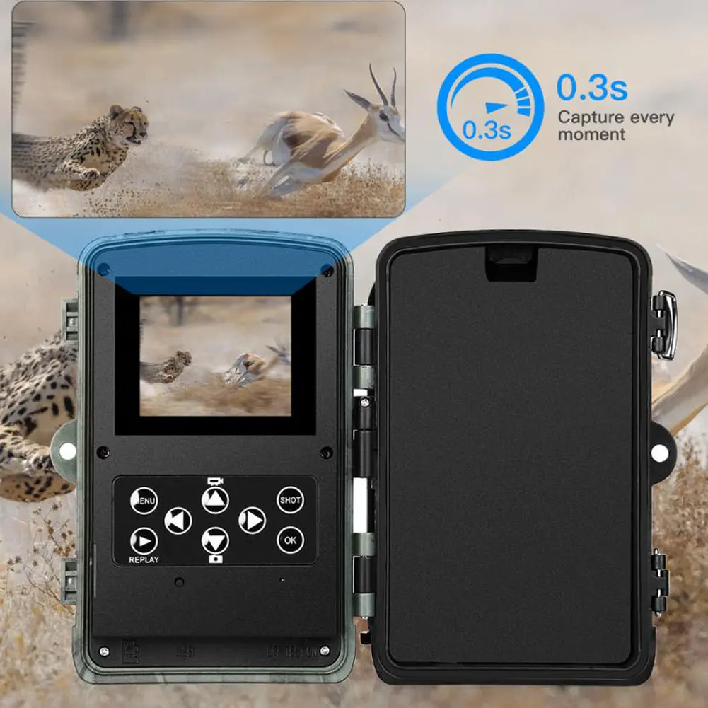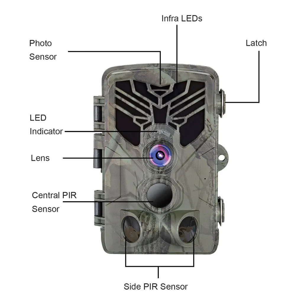 1. Он может срабатывать сразу любым движением человека (или животных) в определенном регионе, заинтересованном (ROI), контролируемом высокочувствительным пассивным инфракрасным (PIR) датчиком движения, А затем автоматически снимает высококачественные фотографии (до 16 пикселей) или записывает HD-видео.
