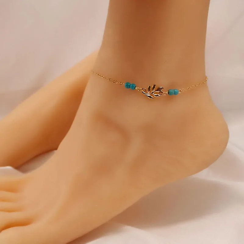 Урожай зеленых листьев браслет бусы для женские модные босоножки до...