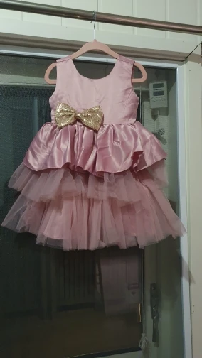 Платье хорошее, выглядит как на картинке. Юбка пышная, внутри с подкладом - царапаться не будет. Внутри есть пара ниток, но не критично. Отпарить хорошенько и будет выглядеть отлично. На ребёнка 3х лет брала 4т - село по размеру. Пришло быстро, посторонних запахов нет
