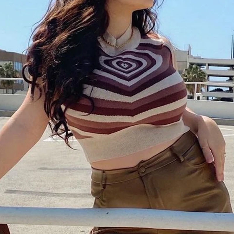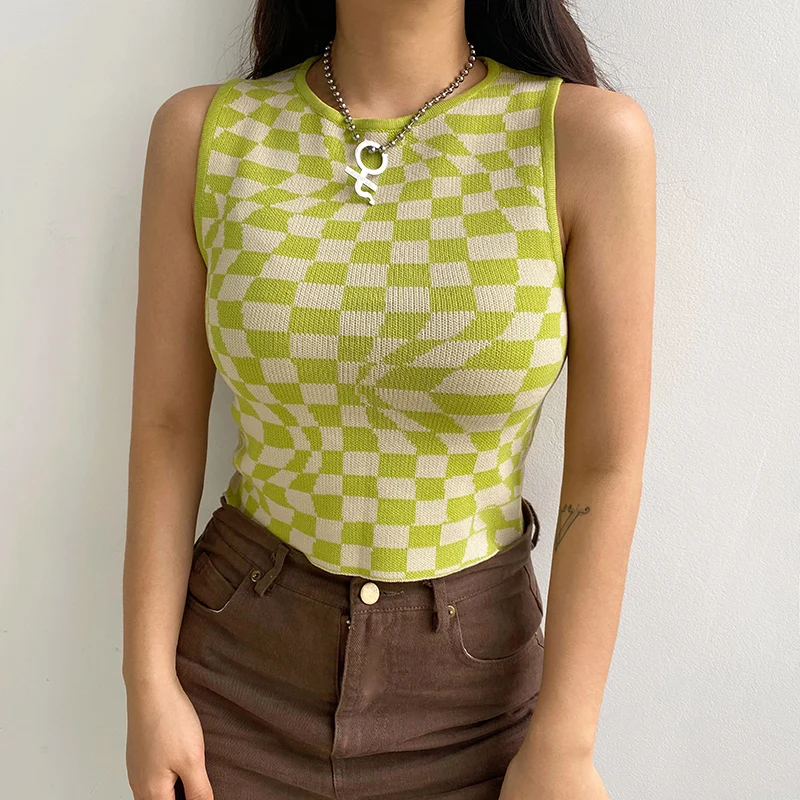 Плед печати Y2k женские вязаные безрукавки для женщин женская летняя обувь в стиле Харадзюку; В винтажном стиле; С принтом укороченный футболка симпатичное детское платье без рукавов, уличная укороченный топ