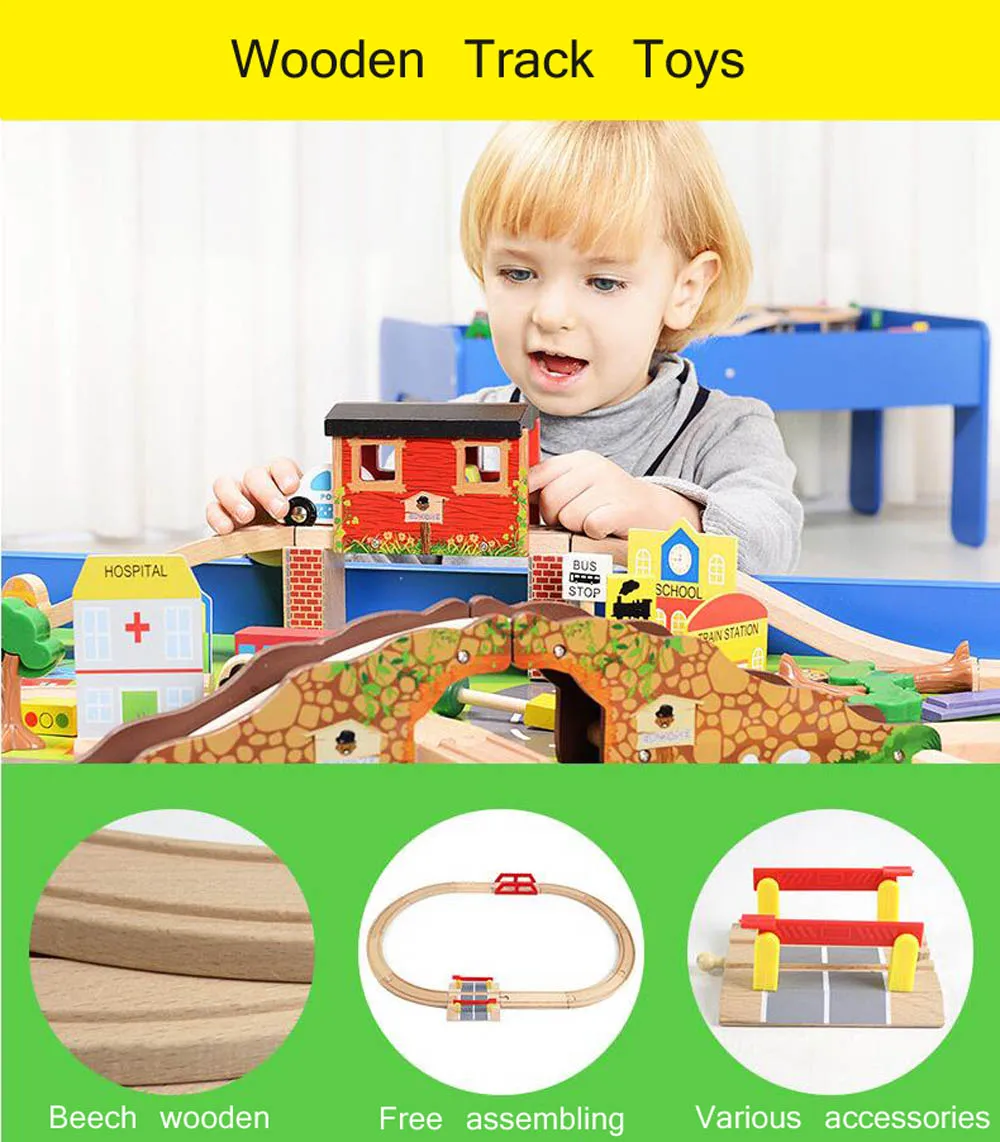 Детали для трека деревянного поезда, аксессуары для железной дороги из бука, мост, туннель, крест, совместимый с деревянным поездом Biro, обучающие игрушки
