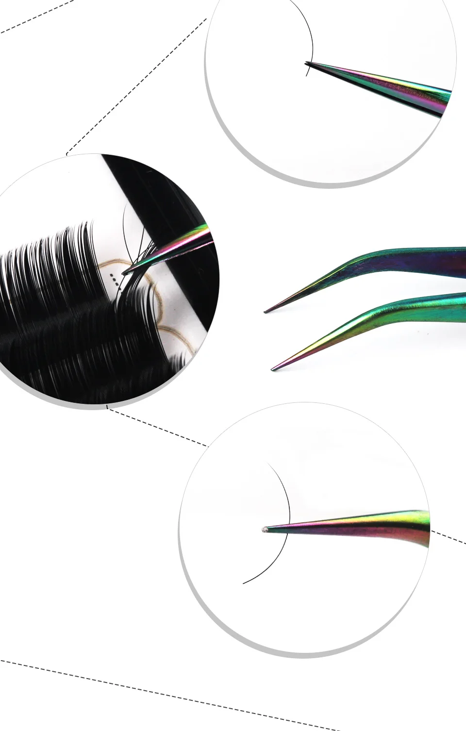 Цветные антистатические пинцеты NEWCOME для наращивания ресниц, наб...