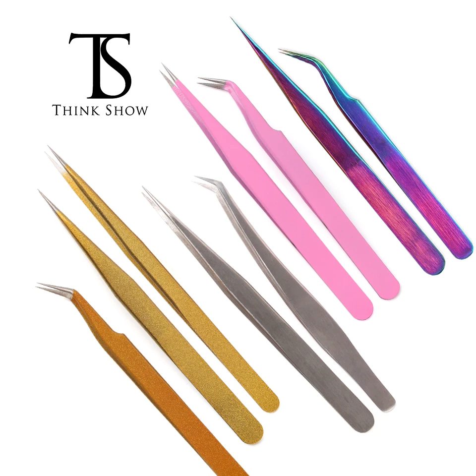 Пинцет для наращивания ресниц THINKSHOW, розовыйсеребристыйцветной ...