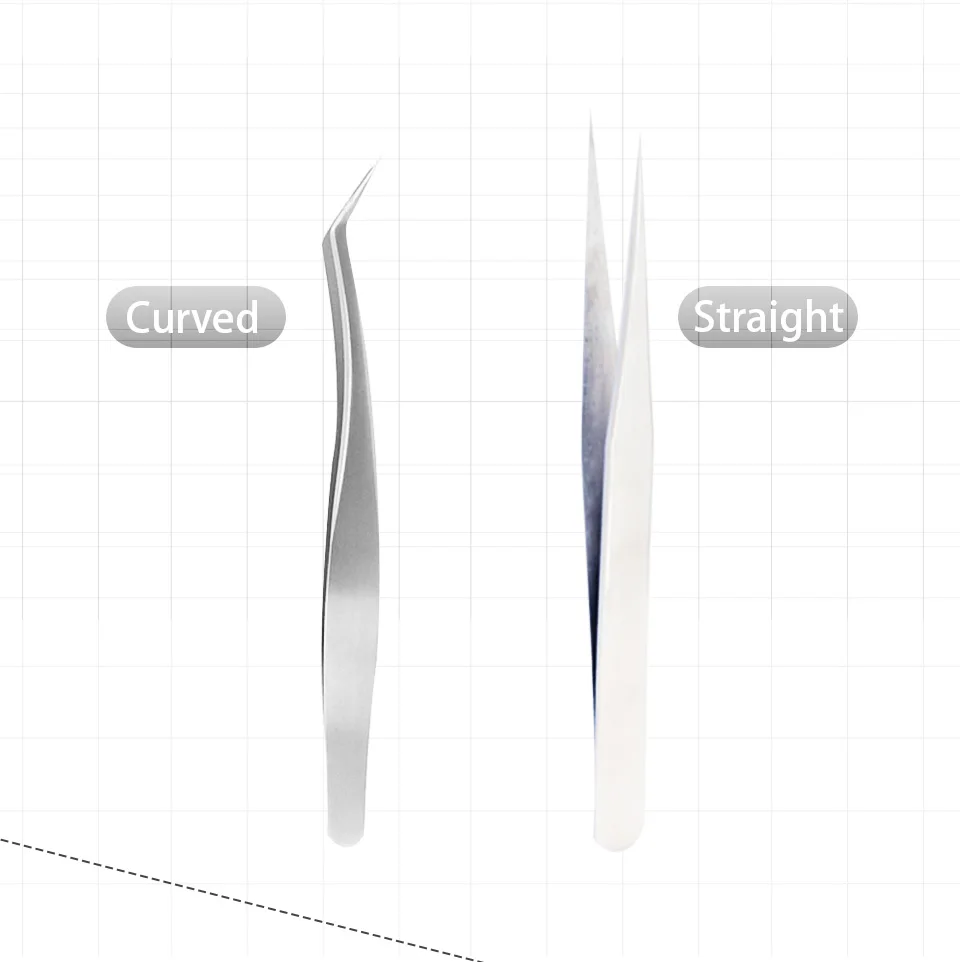 Пинцет для наращивания ресниц, профессиональный макияжный Антистатический пинцет, изогнутыйПрямой пинцет из нержавеющей стали 100%
