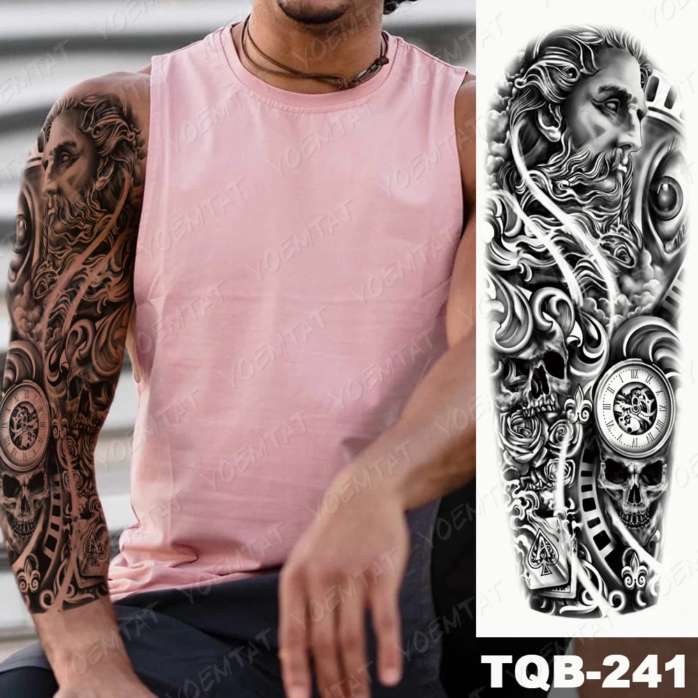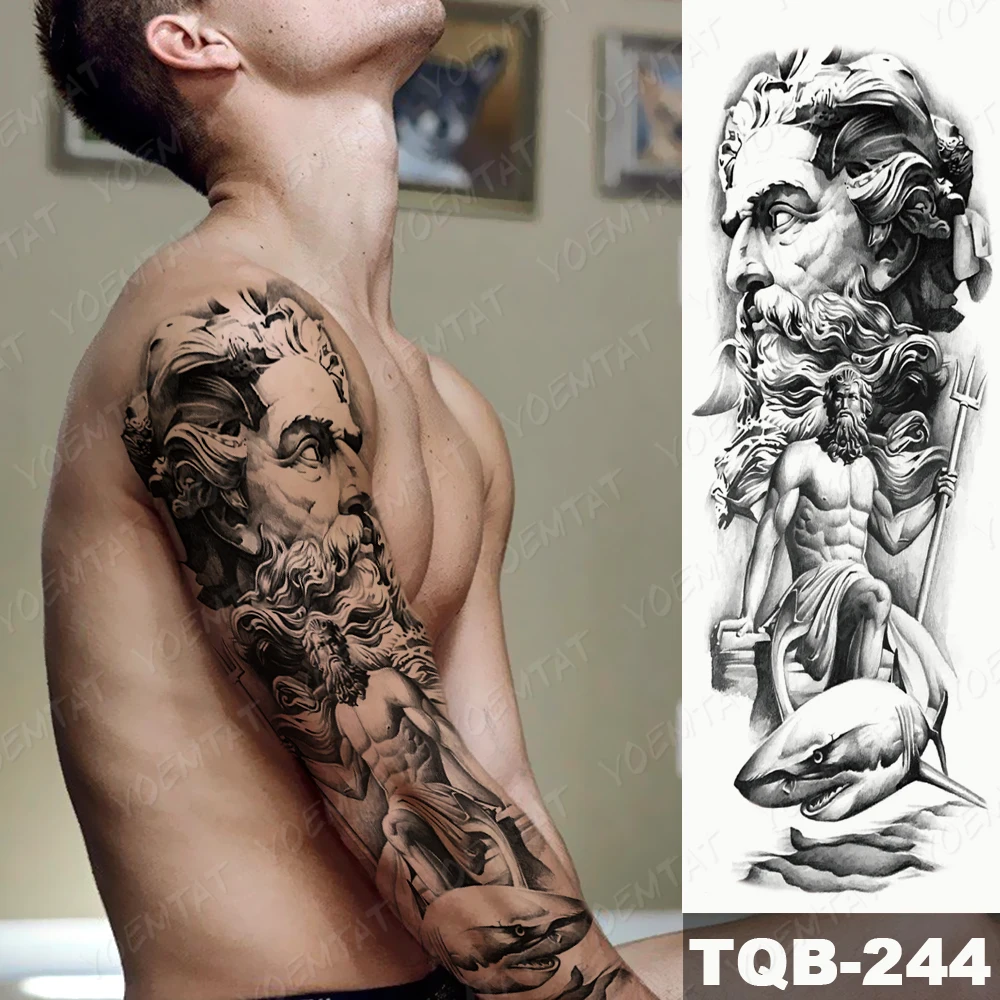 Водостойкая Временная тату-наклейка на всю руку, стикер Zeus, древний греческий Poseidon, черный, флэш-тату, Мужское боди-арт, искусственный рукав, тату для женщин
