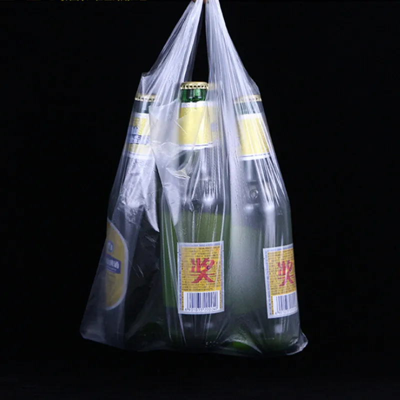 Популярные полезные пластиковые пакеты для покупок 100 шт., прозрачные пакеты для покупок, пластиковые пакеты с ручкой, упаковка для еды